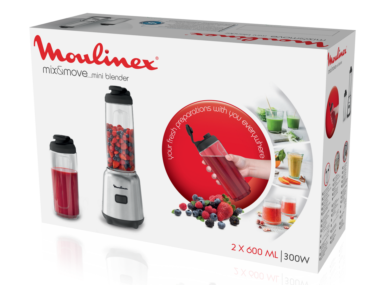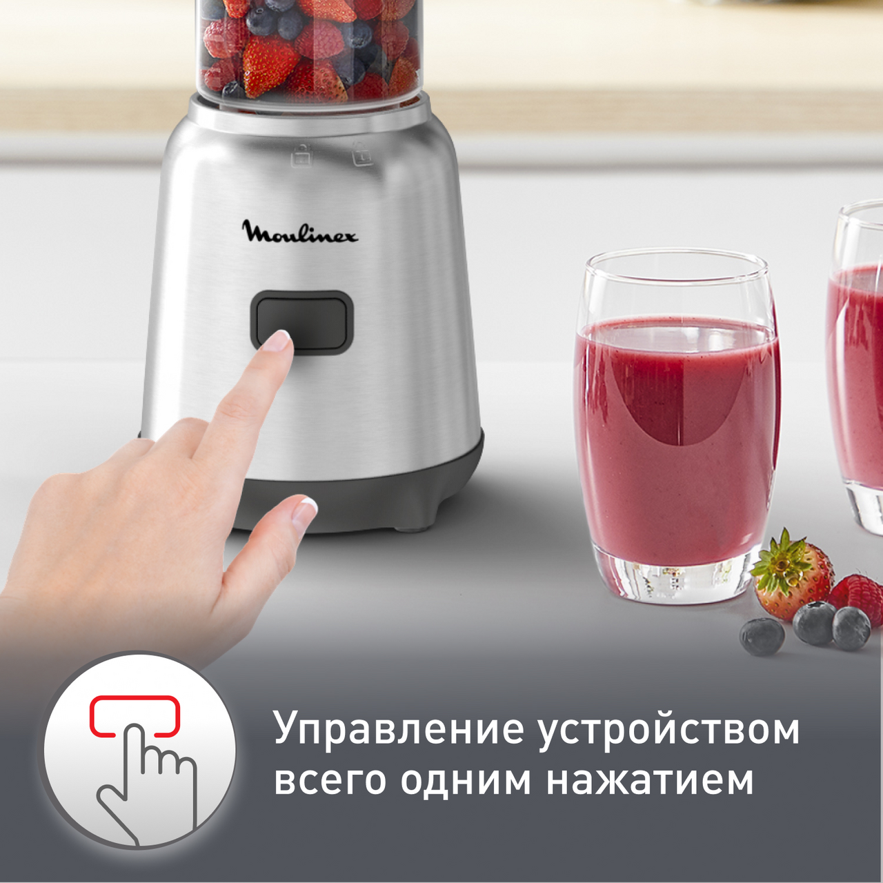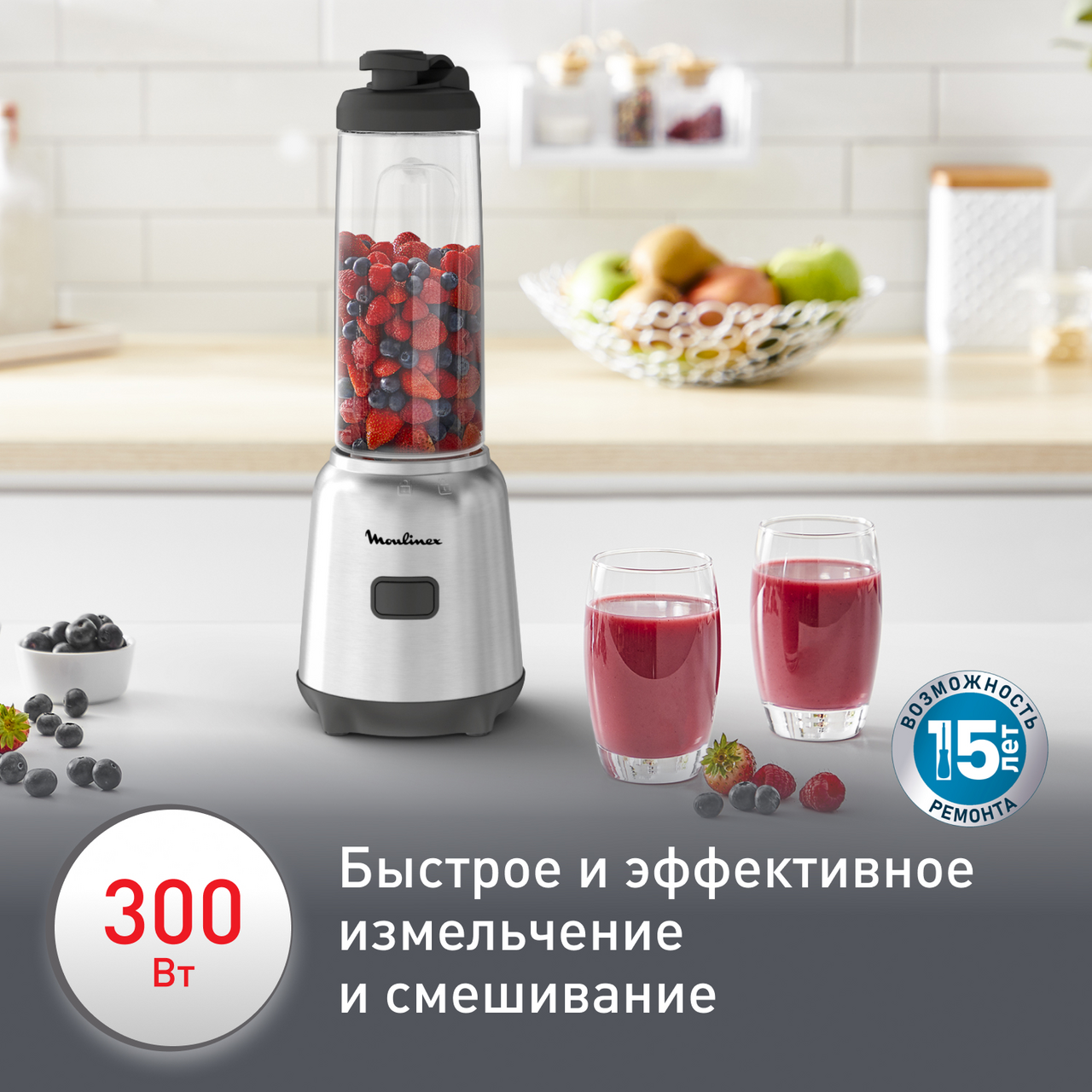 Мини-блендер Moulinex LM15FD10 обеспечивает превосходное смешивание всех ваших любимых смузи, протеиновых напитков и коктейлей, а также пару удобных бутылочек, которые можно взять с собой в дорогу, чтобы вы могли наслаждаться свежими вкусными творениями где угодно. вы хотите. Две практичные высококачественные бутылки из тритана емкостью 0,6л гарантируют вам идеальный размер, чтобы взять с собой свежеприготовленные творения.