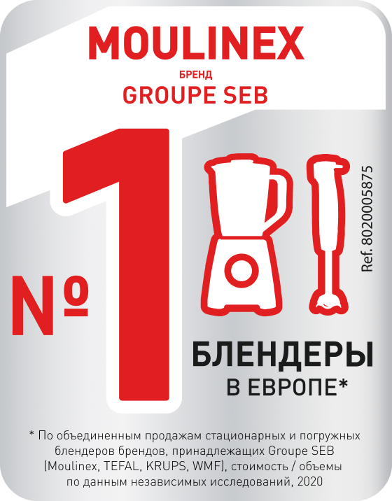 Блендер погружной Moulinex DD533132 поможет быстро приготовить любимые и новые блюда. Его можно использовать для взбивания и измельчения. Это незаменимый помощник на любой кухне. Он необходим в домашних условиях и в профессиональной деятельности. Приобрести такой блендер можно для любого заведения общественного питания (бара, ресторана, кафе и пр.). В комплекте кроме мотора и самого погружного блендера имеется насадка венчик, измельчитель объемом 0,5 л и высокий стакан объемом 800 мл. Такая комплектация покрывает основные потребности. С помощью прибора можно приготовить пюре или паштет. Он помогает измельчить практически любые продукты (мягкие с помощью блендера, твердые – измельчителем). Степень дробления можно контролировать и регулировать. Наличие венчика позволяет в считаные минуты приготовить крем, жидкое тесто, взбитые сливки и пр. Пользоваться блендером легко и удобно. Мотор расположен в корпусе эргономичной формы. Он комфортно ложится в руку и не скользит. Даже при длительной работе мышцы не устают. Для включения на корпусе имеется кнопка. Ножи насадки-блендера закрывает крышка, что предотвращает разбрызгивание. Венчиком удобно взбивать в стакане. Его высота не позволит брызгам попасть на стол и стены даже при работе с жидкостями (например, при взбивании коктейля). На стакане имеется градуированная шкала, что позволяет отмерить нужное количество ингредиентов. Пластик прочный и безопасный, при контакте с продуктами не выделяет опасных веществ. Все металлические части насадок изготовлены из нержавеющей стали. Острые ножи не нуждаются в заточке. Все съемные детали легко моются под проточной водой или в посудомоечной машине.