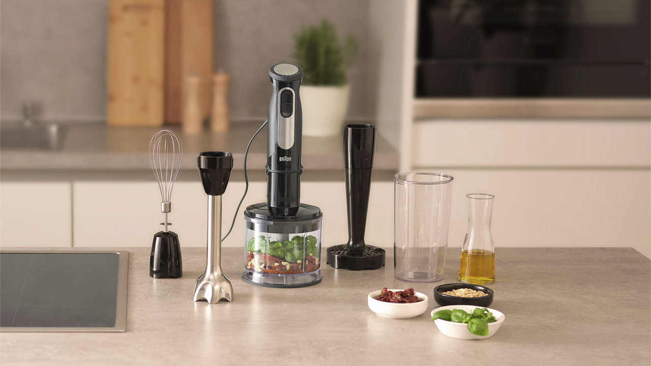 Погружной блендер поможет приготовить здоровую еду - быстро и легко. С первой в мире технологией ActiveBlade измельчайте до 2,5 раз больше ингредиентов благодаря движущимся вверх и вниз ножам, а дополнительное дробящее лезвие PowerBell Plus из нержавеющей стали помогает измельчать продукты в 2 раза быстрее. Новая технология Easy SmartSpeed от Braun, позволяет вам управлять блендером одним касание. В комплект блендера MQ 7035X входят насадки: насадка измельчитель 500мл, венчик, мерный стакан со шкалой объемом 600мл.