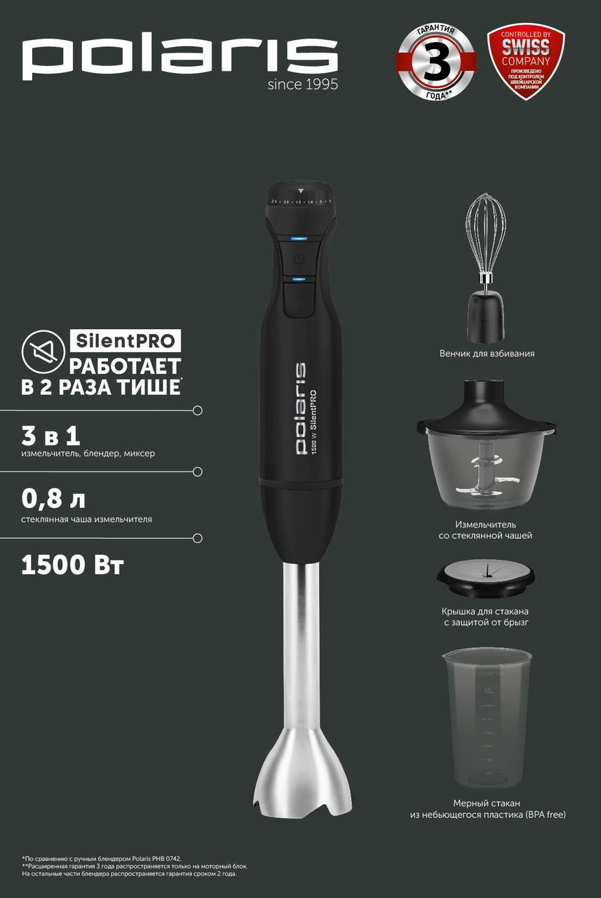 Блендер погружной Polaris Silent PHB 1510GL