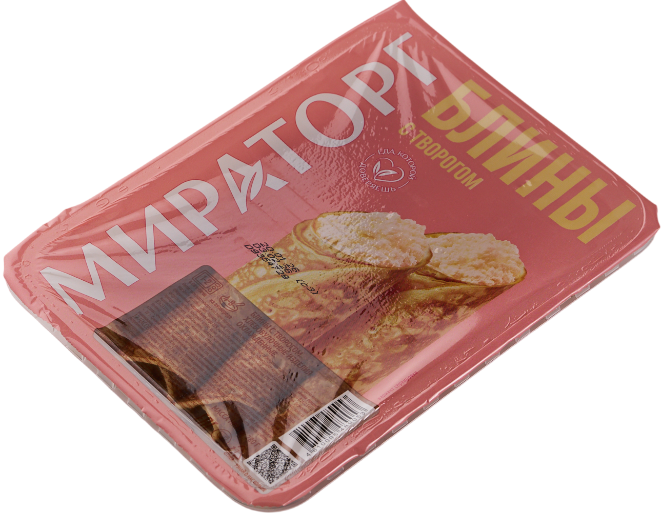 Тесто (вода питьевая, мука пшеничная высшего сорта, масло подсолнечное рафинированное дезодорированное, сыворотка молочная подсырная несолёная, сахар, порошок яичный, соль пищевая, разрыхлитель гидрокарбонат натрия сода пищевая); начинка: продукт створоженный с массовой долей жира 23% молоко обезжиренное, масла растительные, кукурузный крахмал, стабилизаторы Е1422, Е461, цитрусовое волокно, консервант сорбат калия, уплотнитель хлорид кальция, антиокислитель Е385, молокосвертывающий ферментный препарат животного происхождения, закваска молочнокислых культур, творог обезжиренный молоко нормализованное, закваска молочнокислых культур, сахар, молоко сухое обезжиренное, ванильный экстракт вкусоароматические вещества, регуляторы кислотности Е262, Е331, антиокислитель Е316, соль пищевая.