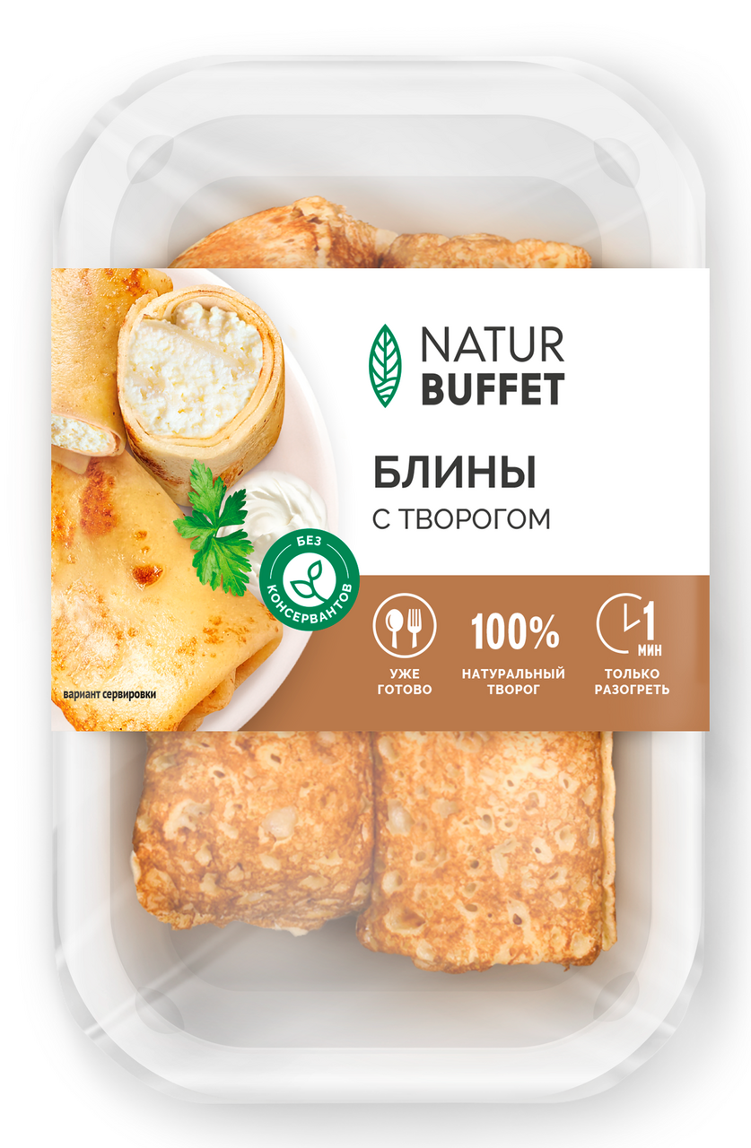 Мучное кулинарное изделие. Блины готовые с молокосодержащей начинкой. Сытный перекус, богатый белком и витаминами. Нежное тесто и сочная начинка делает продукт отличным дополнением к утреннему чаю или полднику. Нежные блинчики с натуральным творожком придутся по вкусу, как взрослым, так и детям.