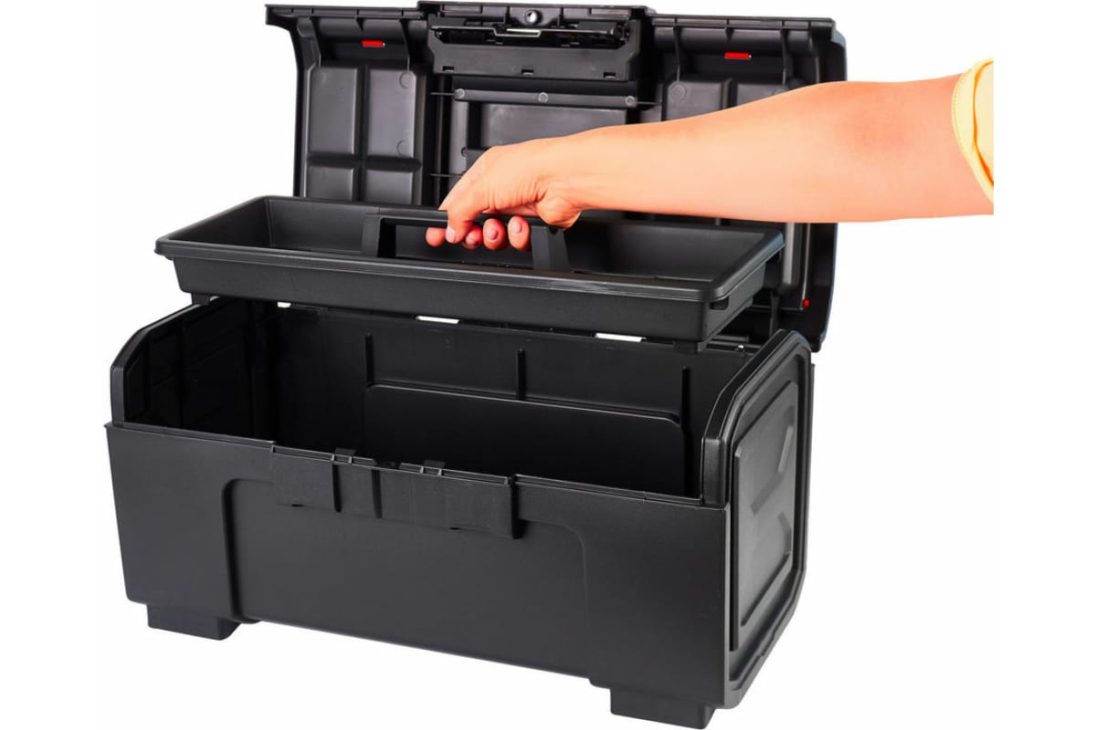 Ящик для инструментов Blocker Boombox 16 дюймов, 16 х 21.5 х 38.8см — отличный вариант для хранения инструментов и аксессуаров к ним. Контейнер станет незаменимым помощников при домашнем ремонте, на даче, в гараже, а также у профессиональных строителей, сборщиков мебели, слесарей. Корпус из прочного пластика защитит принадлежности от механических повреждений, капризов природы, продлит срок эксплуатации уложенных предметов. Основной объем ящика разделяет съемный лоток, в который можно положить небольшие приборы и быстро достать их в случае необходимости. Модель оснащена надежной убирающейся ручкой, которая выдерживает высокую нагрузку и обеспечивает удобную транспортировку. Крышка оборудована особенной конструкцией замка, которая позволяет открывать чемодан одной рукой, при этом случайное раскрытие исключено. Для мелких деталей: саморезов, гвоздей, дюбелей, предусмотрены два удобных отделения, которые можно достать и использовать отдельно. Дополнительные органайзеры закрываются на крепкую защелку. В основании модели сделаны опоры, за счет чего объемный контейнер остается устойчивым независимо от массы, находящихся внутри вещей.
