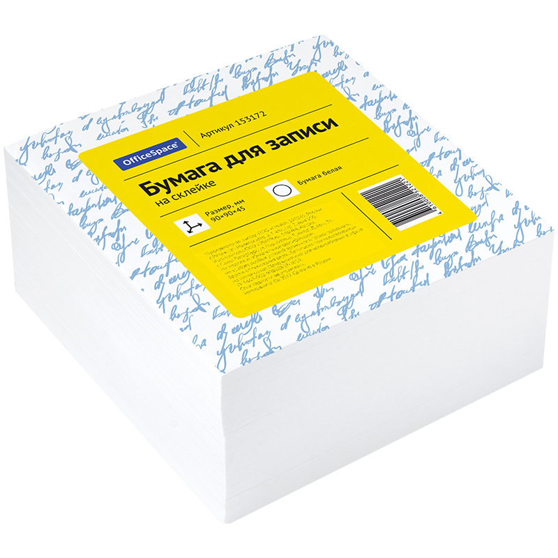 Блок бумаги СПЕЙС для записи на склейке 9*9*4,5 см белый, 1 шт