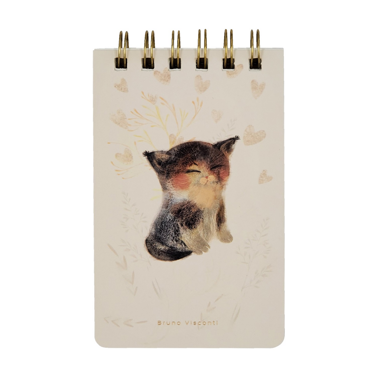 Стильный блокнот на гребне Cute Journal формата A6- от Bruno Visconti вертикального открывания. Блокнот предназначен для ведения записей различного характера. Благодаря гребню страницы тетради можно легко переворачивать на 360 градусов и делать записи на весу во время брифингов, презентаций. А можно раскрыть на 180 градусов, держа открытым на столе. Дизайн обложки – авторский. Обложка изготовлена из картона с матовой ламинацией Soft Touch и тиснением под золото. Внутренний блок содержит 100 листов белой бумаги плотностью 70 г/кв.м в линейку.