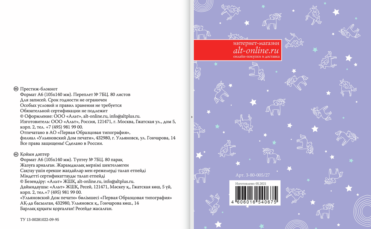Обложка блокнота книжная, жесткая, с глянцевой ламинацией. Оригинальный дизайн. Нежные цвета и милые единороги. Формат блокнота А6. 80 листов - это 160 белых страниц в клетку для ведения и сохранения ваших записей. Лаконичная форма с прямым углом блока и книжным переплетом. Его приятно держать в руках. Материал обложки: глянцевая ламинация.