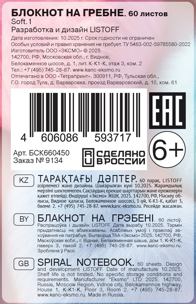 Стильные блокноты А6 на 60 листов - идеальный спутник для учебы, работы и творчества. Прочная обложка из мелованного картона, белая офсетная бумага плотностью 60г/м в клетку удобна для заметок, схем и рисунков. Крепление на гребне позволяет легко отрывать листы. Практичные и элегантные блокноты для тех, кто ценит порядок и стиль.