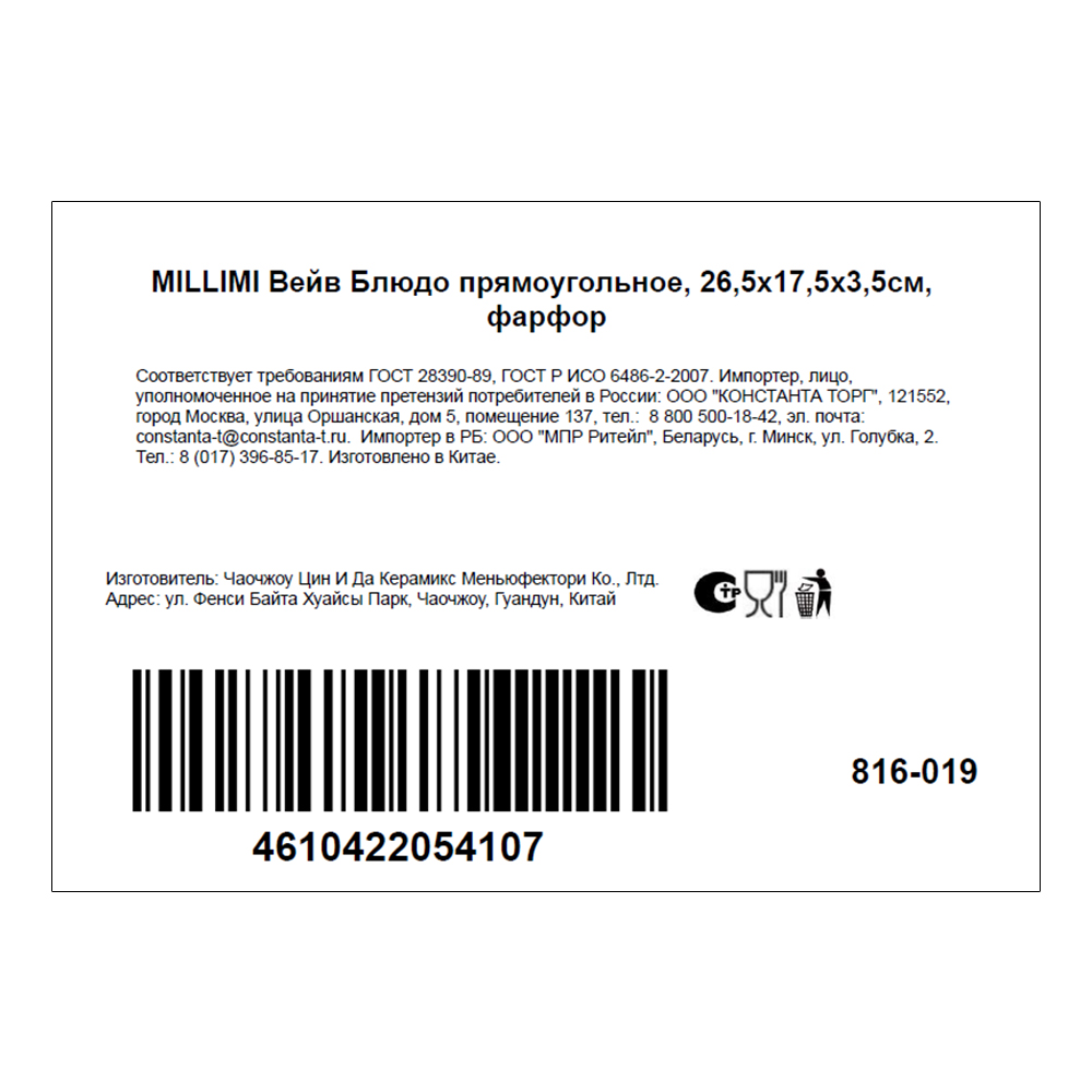 Блюдо прямоугольное Millimi Wave, 26.5 х 17.5см