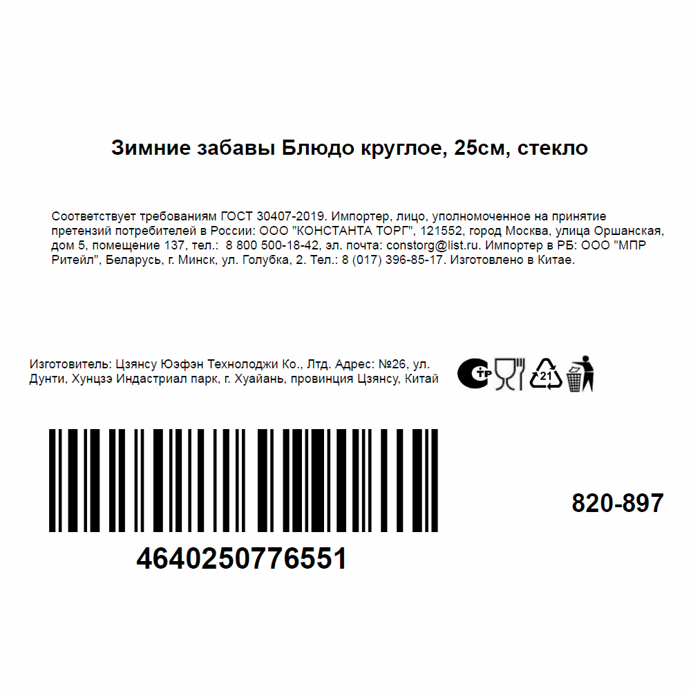 Изготовлено из ударопрочного стекла. Прекрасно вписывается в любую сервировку. Подходит для сервировки тортов, десертов, фруктов, нарезок, а также пиццы, гарниров и вторых блюд.