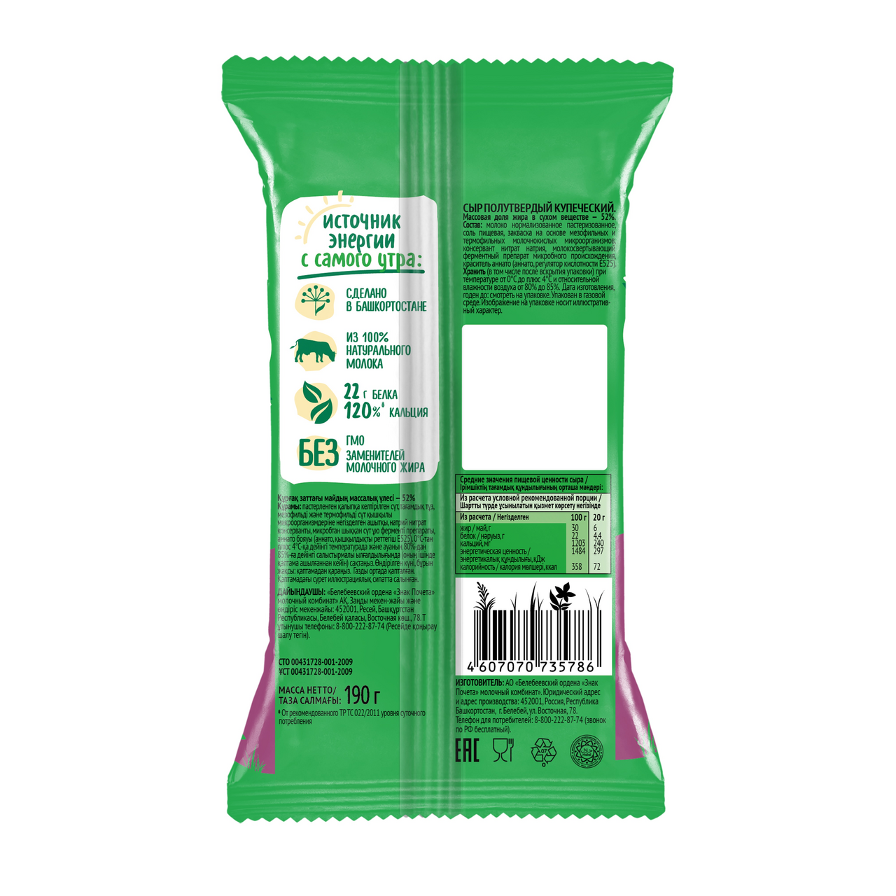 Сыр Белебеевский Купеческий полутвердый 52%, 190г