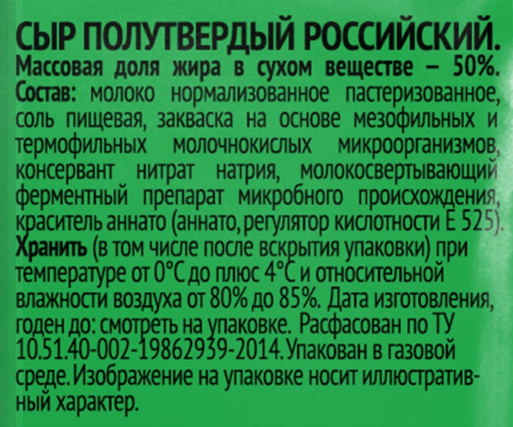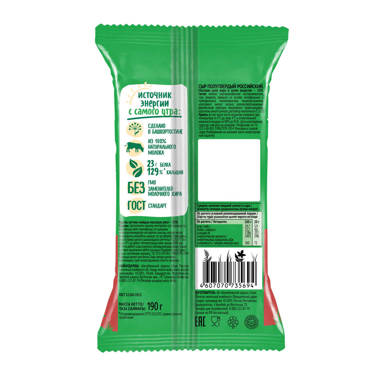 Сыр Белебеевский Российский полутвердый 50%, 190г