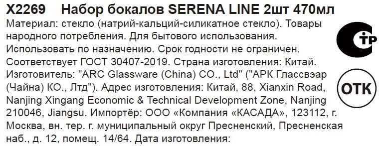 Бокал для вина Luminarc Serena Line 2шт, 470мл