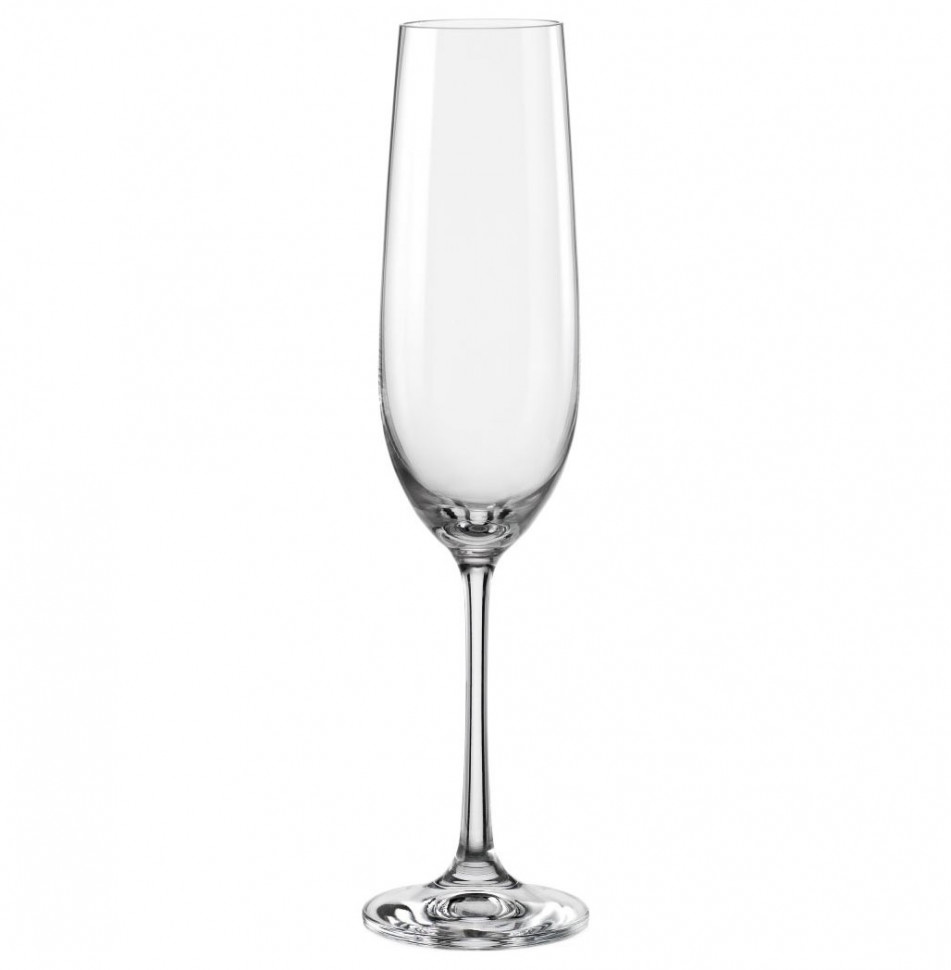 Набор бокалов для шампанского Wilmax Cristalline, 260 мл х 2 шт. — элегантная посуда, изготовленная из уникального хрустального стекла. Материал отличается безупречной гладкостью и идеальной прозрачностью, красивым блеском и при соприкосновении с другой стеклянной посудой издает приятный звон. Хрустальное стекло не содержит оксида свинца и других опасных для здоровья примесей, благодаря ровной гладкой поверхности на нем не скапливается грязь и не создаются условия для размножения бактерий. Бокал, рассчитанный на 260 мл игристого напитка, снабжен тонкой высокой ножкой, за счет чего его комфортно держать в ладони. Элегантный и вместе с тем лаконичный дизайн позволяет использовать эту посуду как для сервировки праздничных столов, так и для простых семейных ужинов. Широкое основание обеспечивает хорошую устойчивость емкости, а закаленный ободок снижает риск случайных сколов. Модель неприхотлива в уходе: ее можно мыть как вручную, так и в посудомоечной машине, выбрав специальный режим для стеклянных изделий. В набор входят сразу два бокала, помещенные в презентабельную коробку – такой комплект можно преподнести в качестве практичного подарка супружеской паре.