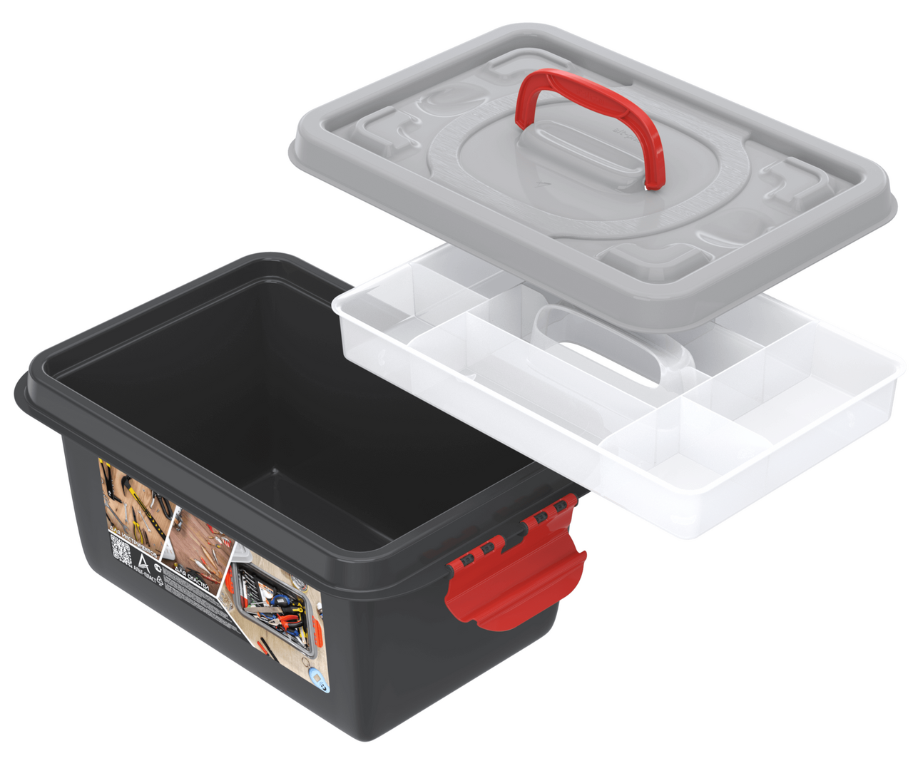 Универсальный бокс с вкладышем 8л. Предназначен для инструментов и рыболовных снастей. У бокса имеются закрывающиеся защелки, удобная ручка на крышке, вкладыш разделен на секции. Бокс помогает навести порядок и рассортировать мелкие предметы, разложить болты, шурупы и саморезы легко во вкладыше, они не потеряются и у каждой мелочи будет своё место. Размер бокса: 35.924.216.6 см (Д*Ш*В) Цвет: серый. Максимальная нагрузка -15кг, общий объем в литрах 8л.