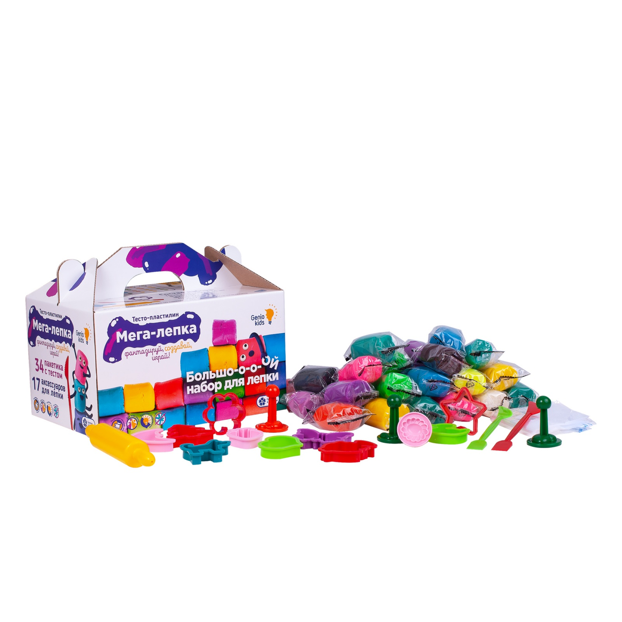 НАБОР DREAM MAKERS МЕГА ЛЕПКА - это мега большой набор расходников тесто-пластилина и аксессуаров. Открыв коробку, вы найдете 34 бруска с тестом и большое количество разнообразных инструментов, которые помогут ребенку в его творчестве. Количества теста в наборе хватит на долгое время, и ребенок сможет слепить большое количество поделок. В наборе: тесто-пластилин – 34 шт по 50 г (17 цветов), вырубные формочки – 10 шт, штампики – 4 шт, стек – 2 ш��, скалка – 1 шт, пакетики для хранения теста – 10 шт. Состав тесто-пластилина: мука, вода, крахмал, соль, ароматизатор.
