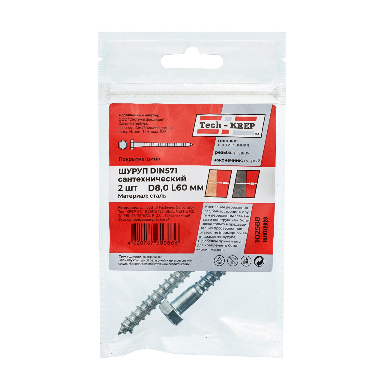 Болт Din 571 TECH-KREP 2шт, 8x60см