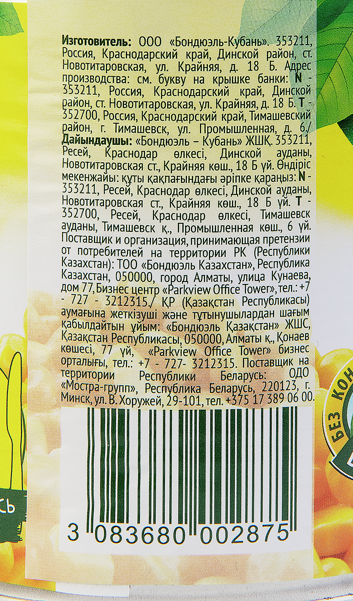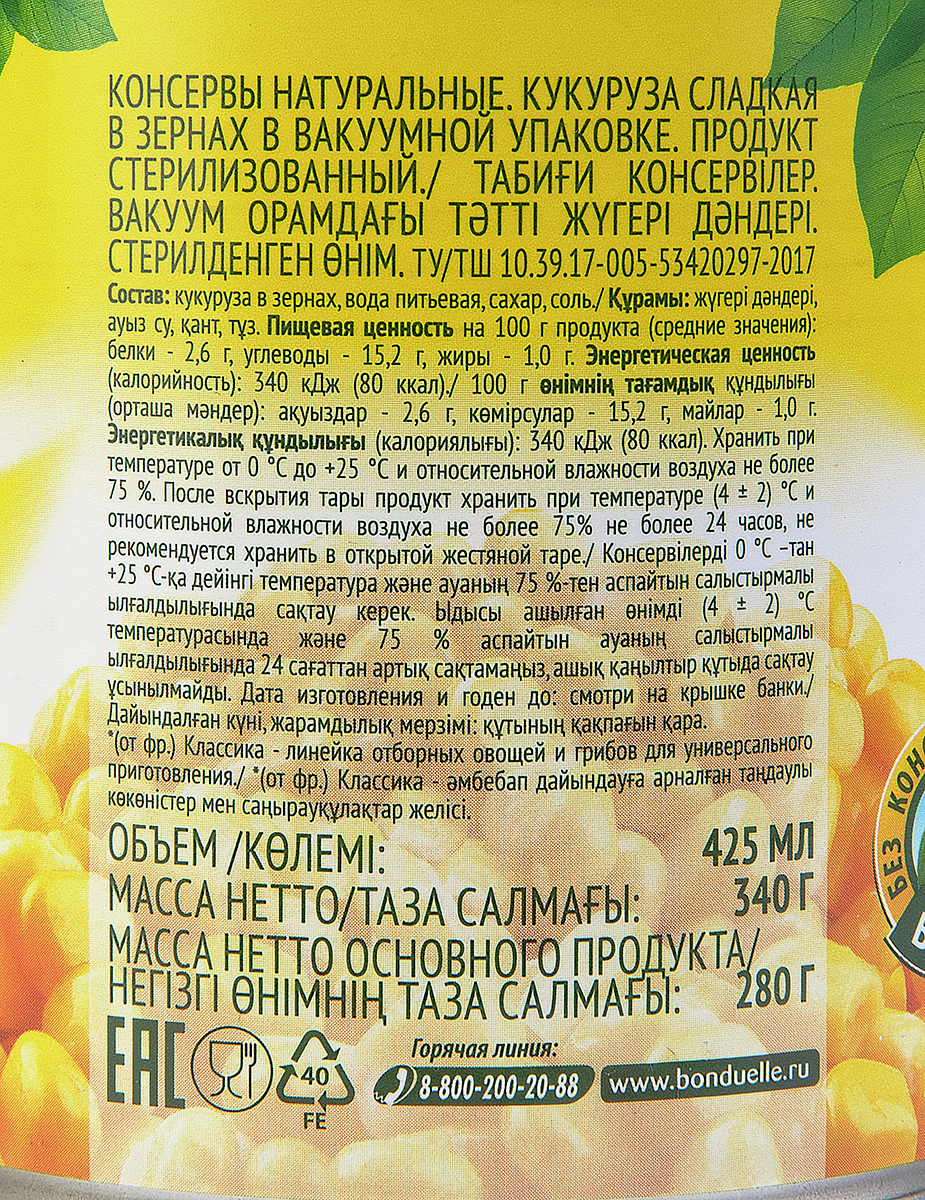 Тот самый чудесный вкус, которые многие помнят с детства! Сладкая кукуруза тщательно отбирается, прежде чем попасть в банку, процесс от сбора с грядки до упаковки проходит всего за 4 часа, поэтому на вашем столе всегда самые отборные, сочные и золотистые зерна. Создавайте классические, традиционные блюда с сочной и универсальной кукурузой от Бондюэль.