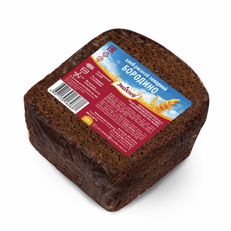 Хлеб Бородино торговой марки Экохлеб – улучшенный вариант популярного ржаного заварного хлеба. Польза его в основных ингредиентах: ржаная мука и солод делают этот вкуснейший хлеб настоящим кладом для здоровья. Ароматный хлеб отлично сочетается с супами, мясными и рыбными блюдами, а также сливочным маслом.