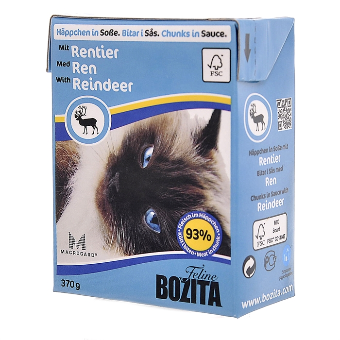Корм влажный Bozita кусочки в соусе с оленем для кошек, 370г