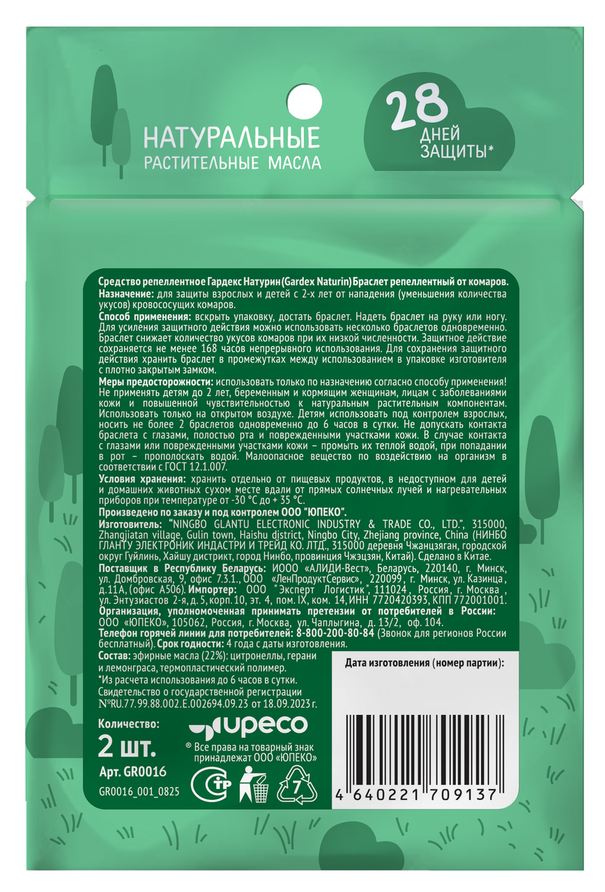 Браслет репеллент для детей Gardex Naturin от комаров 2+, 2шт