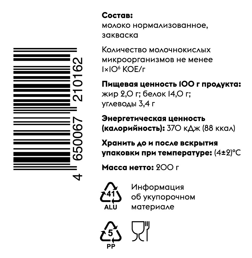 Молоко нормализованное пастеризованное, закваска.