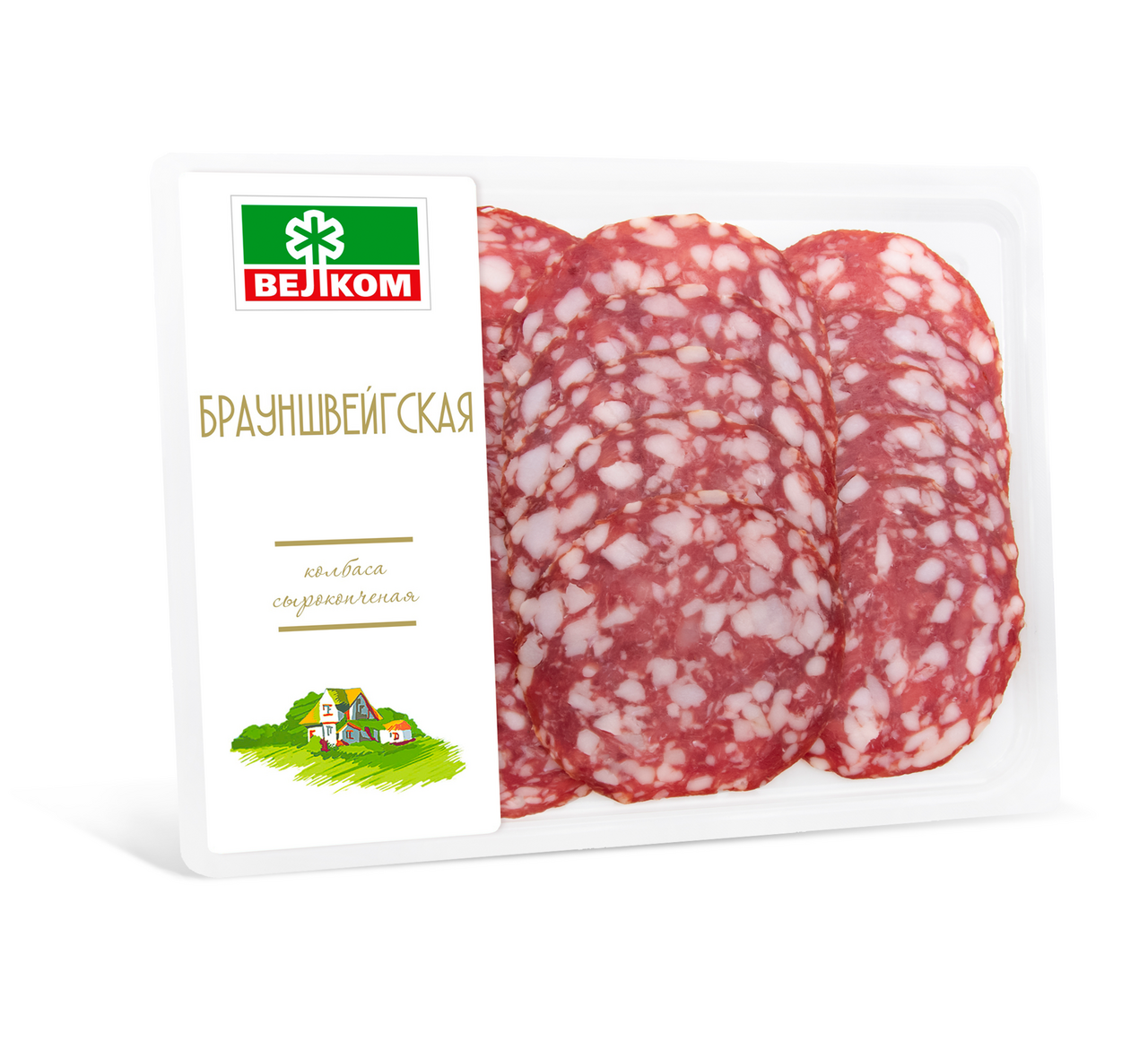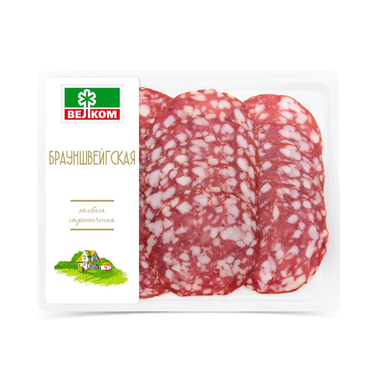 Колбаса Велком Брауншвейгская сырокопченая полусухая нарезка, 150г