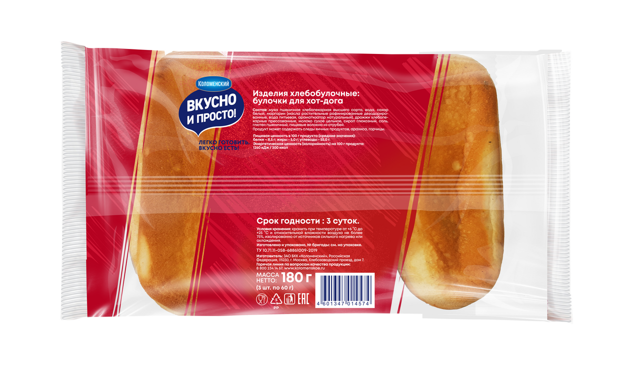 Булочки для хот-догов Коломенский (60г х 3шт), 180г