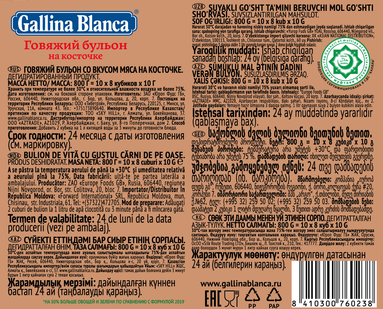 Кубики бульонные Gallina Blanca говяжий бульон на косточке, 10г