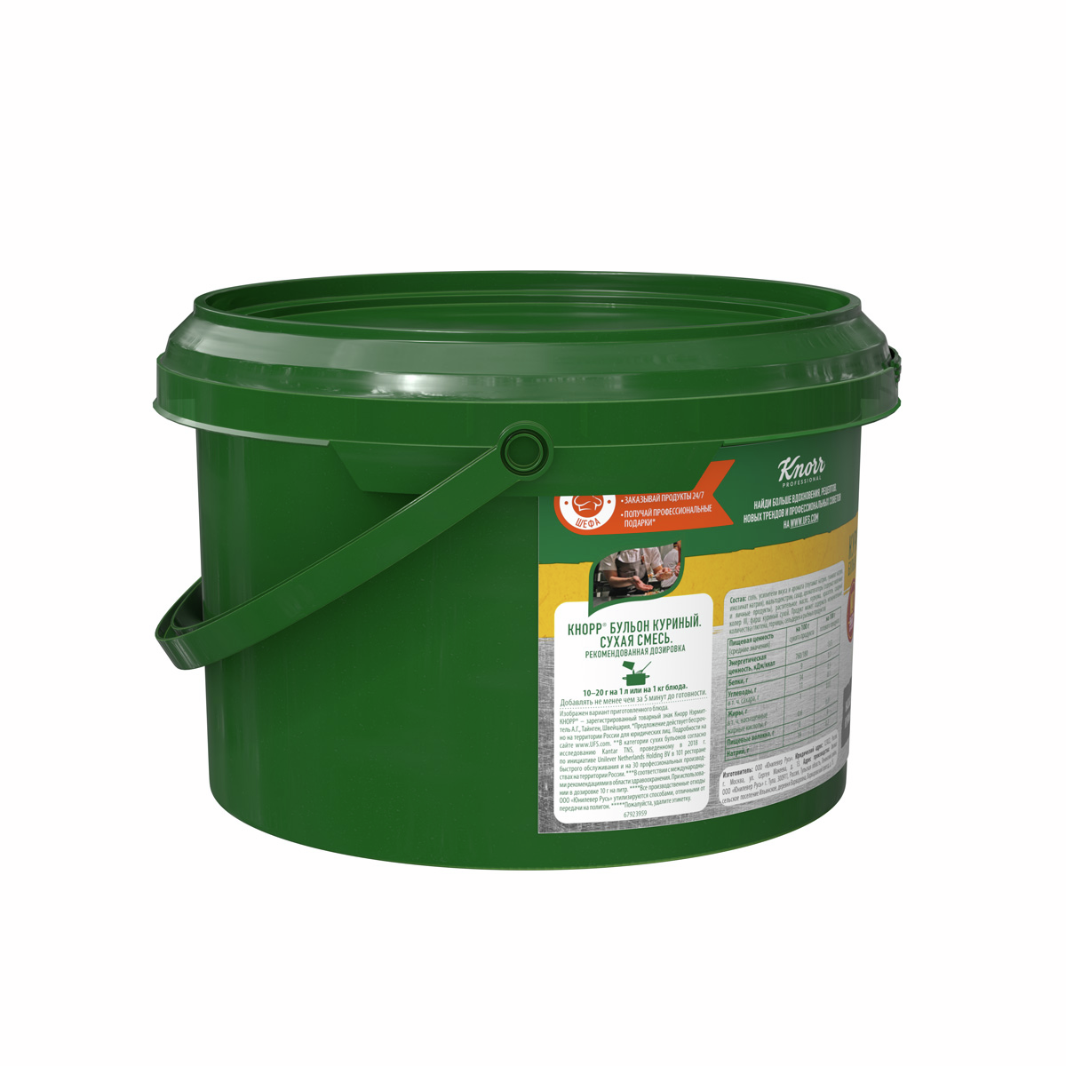 Бульон Knorr куриный изготавливается из натуральных отборных ингредиентов без искусственных красителей и ароматизаторов. Продукт популярен как в быту, так и в профессиональной кулинарии. Столовой ложки смеси достаточно для создания наваристого ароматного супа. Сухой микс может выступать в качестве приправы для вторых блюд или соусов. Если добавить продукт в мясной фарш, то котлеты или биточки приобретут особый вкус с запахом пряностей и специй.
