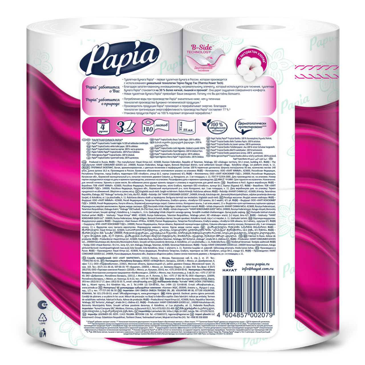 Туалетная бумага Papia Tropical Exotics 3-слойная, 4 рулона