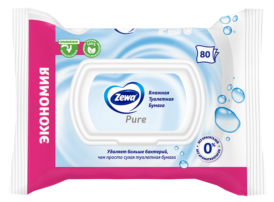 Влажная туалетная бумага Zewa Pure, 80 листов