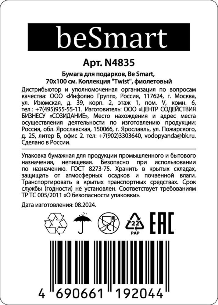 Бумага упаковочная Be Smart Twist 70 х 100см