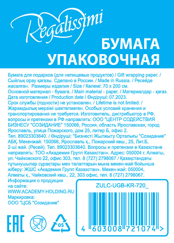 Бумага упаковочная Regalissimi крафт, 70 x 200см
