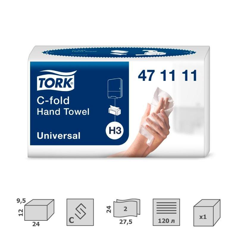 Бумажные полотенца Tork Universal H3 C-сложения листовые 2 слоя, 120шт x 20 упаковок