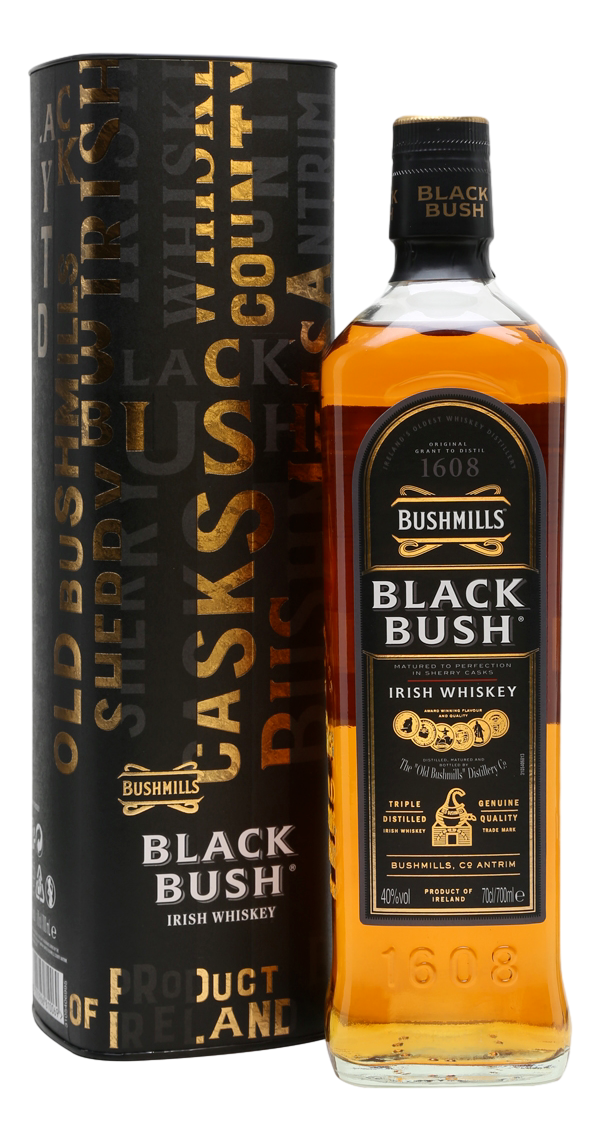 Виски Bushmills Black Bush, 0,7 л обладает глубоким янтарным цветом и насыщенным многогранным букетом. В нем гармонично сплетаются акценты сушеных фруктов, орехового пирога, ощущаются цукаты и херес. Нежный и мягкий, хорошо сбалансированный вкус окружает шелковистой медовой сладостью и плавно переходит в пикантное ореховое послевкусие. Благородный напиток считается одним из наиболее известных и качественных ирландских виски. Для его создания используются отборные солодовые и зерновые сорта, выдержанные в дубовых бочках из-под бурбона и хереса. Виски впервые был представлен публике в 1934 году. С тех пор он не только обрел массу почитателей, но и неоднократно принимал участие в специализированных международных конкурсах и фестивалях. Напиток награжден золотыми и серебряными медалями Wizards of Whisky Awards, Liquid Gold Award и других мероприятий. Чтобы в полной мере оценить его отменные дегустационные качества, подавать напиток рекомендуется при температуре около 20-22С. Для его сервировки используют специальные широкие и низкие бокалы Рокс с толстым дном, в которые при желании добавляют несколько кубиков льда или немного прохладной воды. Виски не требует сопровождения в виде закусок или основных блюд. Его традиционно предлагают в качестве дижестива после приема пищи. Виски также может выступать одним из ингредиентов при приготовлении коктейлей по авторским и классическим рецептам. На его основе создают такие напитки, как Old Fashioned, Manhattan, Irish Coffee, Rob Roy. Bushmills – компания, которой принадлежит одна из старейших винокурен в мире. Она получила официальную лицензию на изготовление виски еще в 1608 году. Сегодня выпущенные под этой маркой напитки пользуются широкой популярностью у ценителей благородного алкоголя и продаются в разных странах мира.