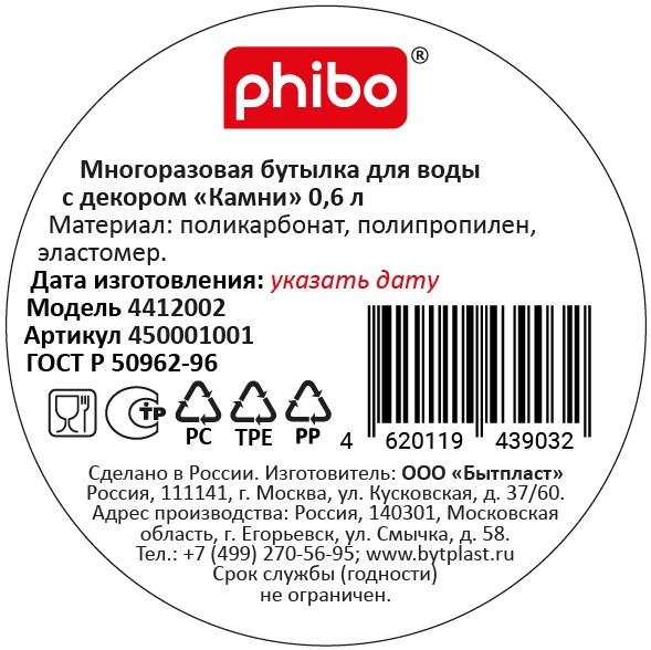 Многоразовая бутылка для воды из поликарбоната от Phibo станет превосходным выбором для сторонников активного образа жизни, желающих внести вклад в защиту окружающей среды через сокращение потребления одноразовой упаковки. Использование этой бутылки обеспечивает уверенность в качестве питьевой воды и чистоте самой ёмкости. Поликарбонат - высокопрозрачный материал, который визуально почти не отличается от стекла. Глянцевая поверхность и кристальная чистота материала придают изделию современный и аккуратный вид. Её компактные размеры позволяют удобно размещать бутылку в подстаканнике автомобиля, держателе коляски или велосипеда, а также брать с собой в сумке или рюкзаке. Для более удобной переноски предусмотрена петля держатель на крышке. Система закрытия надёжно предотвращает протекание жидкости. Декор выполнен посредством шелкографии, а его высокая стойкость позволяет мыть изделие в посудомоечной машине. Бутылка изготовлена из безопасного пищевого пластика, не влияющего на вкусовые качества напитков и не впитывающего посторонние запахи.