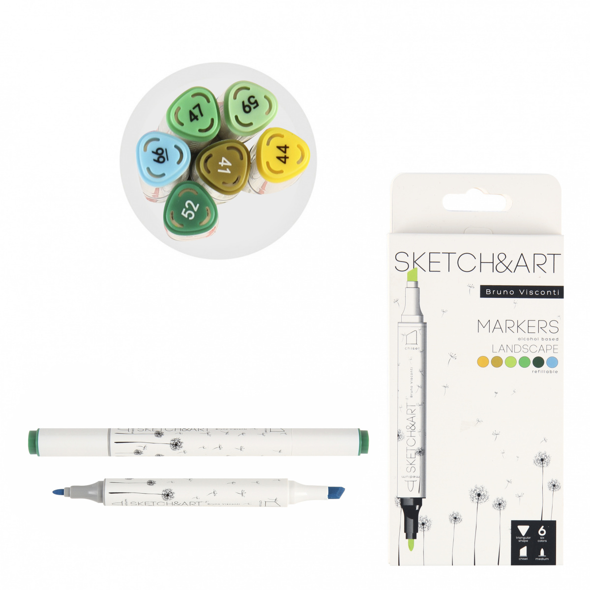 Набор двусторонних маркеров для скетчей Bruno Visconti 6 цветов