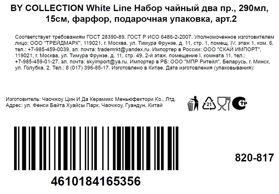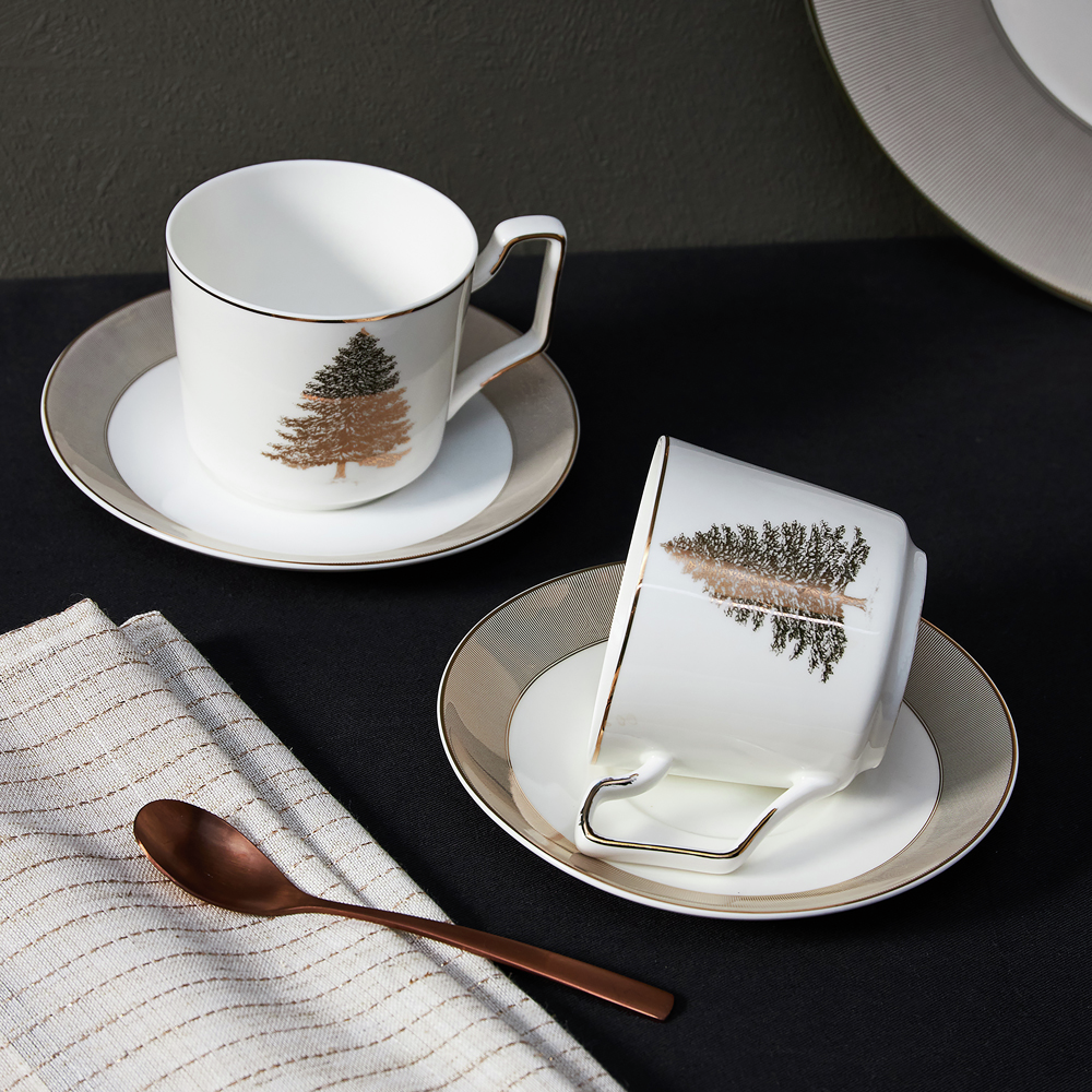 Набор чайный By Collection White Line Ель 2 предмета блюдце 15см кружка 290мл