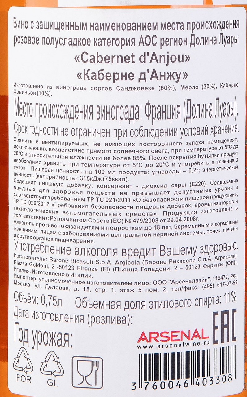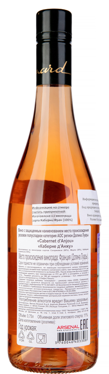 Вино Cabernet d'Anjou розовое полусладкое, 0,75л