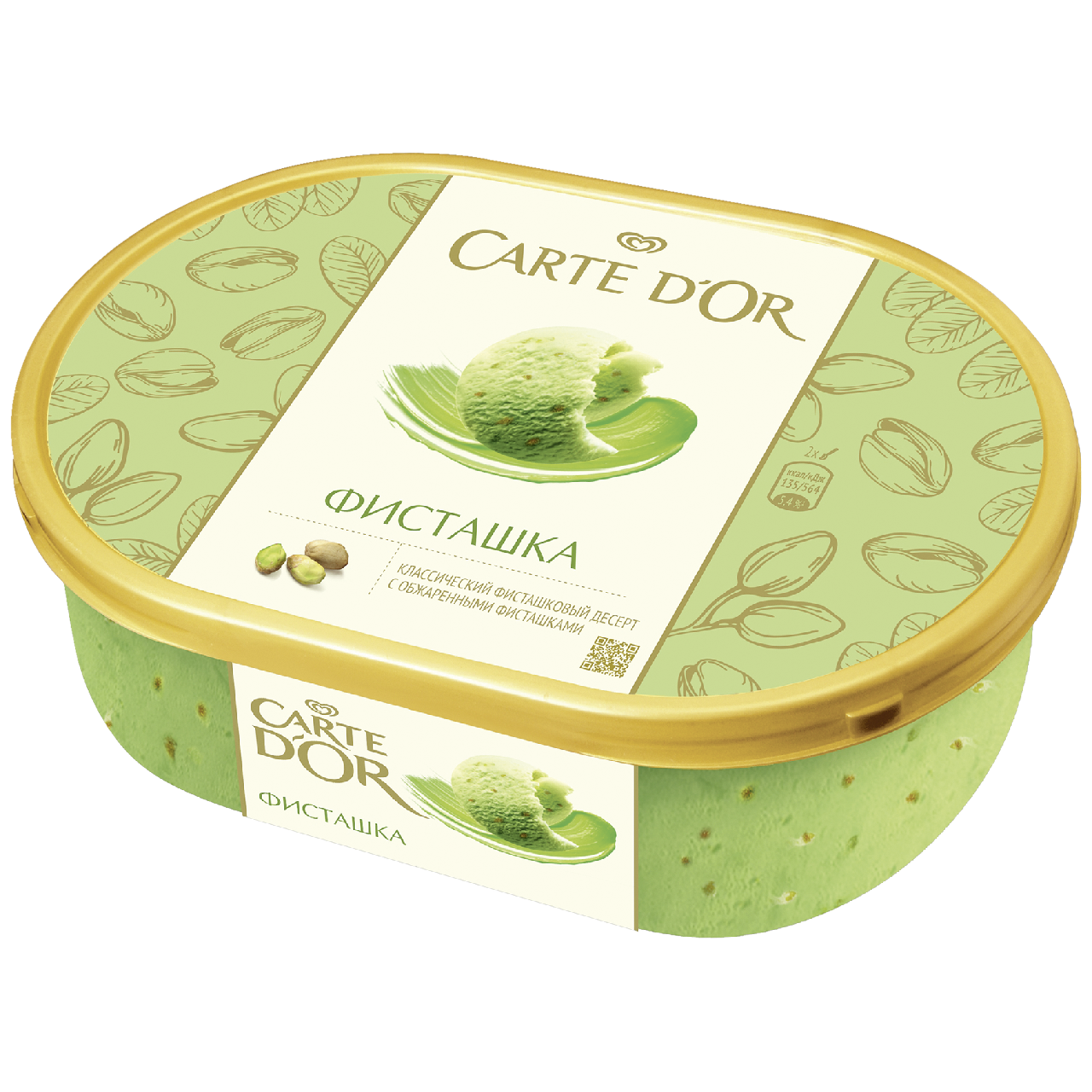 Десерт от Инмарко замороженный с фисташками Carte D’or Фисташка 475г. Carte D’or Фисташка – это пикантный фисташковый десерт с кусочками обжаренных фисташек. Фисташка является одним из самых популярных вкусов. В состав ванночки входят обжаренные дробленные фисташки и натуральная паста фисташки, состоящая из обжаренных тертых фисташек.Carte D’or Фисташка – это мороженое, сочетающее в себе сложную композицию самых изысканных ингредиентов, которые создают неповторимый вкус десерта Carte D’or. Несомненными преимуществами ванночки Carte D’or Фисташка являются: высокое качество продукции, популярный формат и премиальный дизайн. В ассортиментной линейке ванночек Carte D’or представлены следующие вкусы: Манго, Фисташка, Банановый сплит, Тирамису.Carte D’or (фр. Золотая карта) — мороженое, созданное в 1978 году во Франции специально для ресторанов и кафе, предъявлявших повышенное требование к вкусовым качествам продукта.Carte D’or успешно продается во Франции, Великобритании, Италии, Испании, Греции, Германии и других европейских странах. C 2012 года это восхитительное мороженое можно купить и в России.Carte D’or представлен в двух форматах: ванночки мороженого для всей семьи и профессиональный вариант десерта – скупинг. Благодаря этому мороженое Carte D’or можно купить как домой, так и во время прогулки с друзьями в парке или торговом центре.Отличительной особенностью мороженого Carte D’or является изысканное сочетание вкусов, сопоставимое с лучшими десертами европейских ресторанов. Carte D’or – больше, чем десерт.