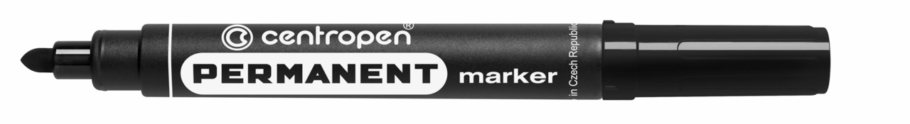 Маркер CENTROPEN Permanent marker черный, 2,5 мм изготавливается под брендом известным более полувека. Письменные принадлежности производителя отличаются высоким качеством, хорошими эксплуатационными свойствами и широкой областью применения. Односторонний перманентный маркер заключен в практичный корпус. Инструмент позволяет наносить стойкие четкие линии на большинство поверхностей. При этом пишущий узел изделия с толщиной 2,5 мм оставляет плотный густой след на пленке, пластмассе, стекле. Не возникает проблем с нанесением изображений как на гладкое, так и на шероховатое покрытие. Чернила на спиртовой основе и с черным пигментом оптимально впитываются, мгновенно сохнут, а также выдерживают воздействие воды и солнечных лучей. Линиям от маркера свойственна насыщенность цвета. Благодаря плотно прилегающему колпачку маркер не придет в негодность за короткое время.