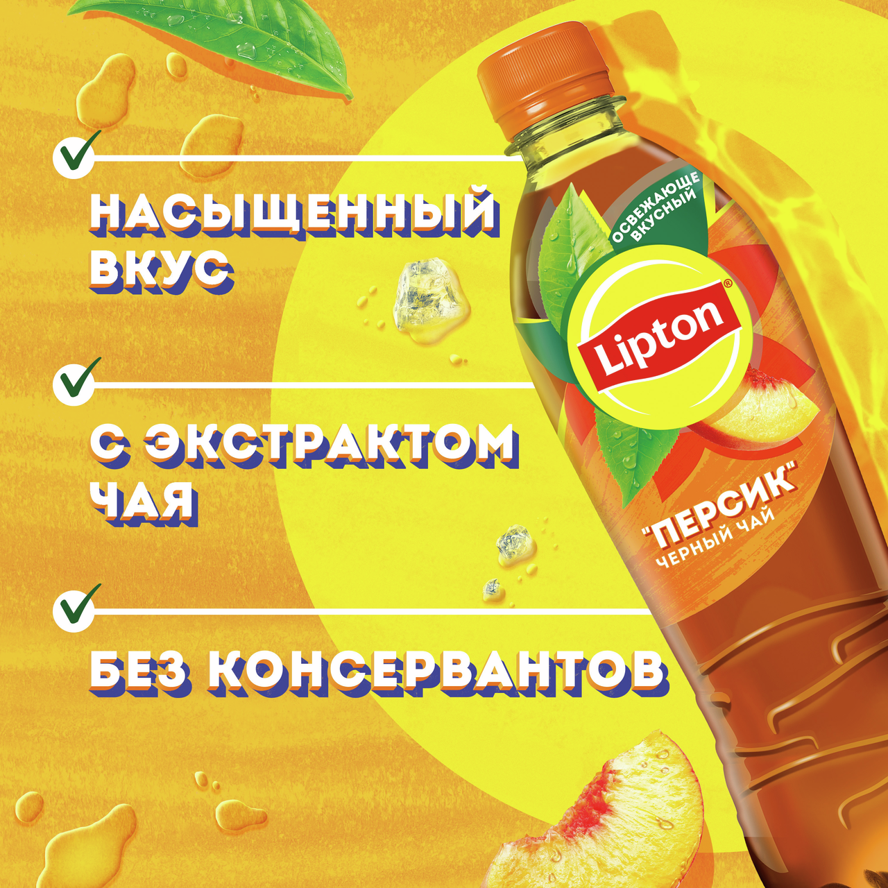 Холодный чай Lipton черный со вкусом персика, 500мл x 12 шт