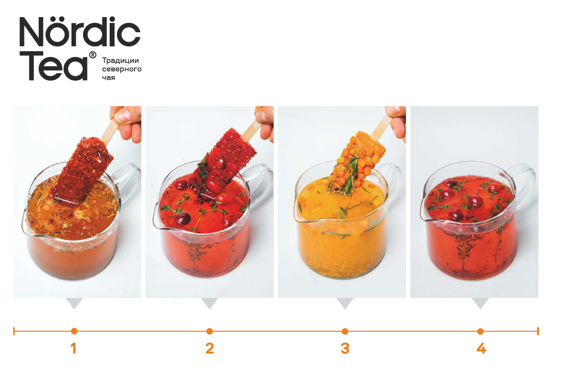 Чай облепиха с розмарином Nordic Tea, 50г готовится методом заливания основы горячей водой и настаивания в течение 30 секунд. В состав продукта входят полезные компоненты без добавления вредных веществ, ГМО и красителей. Лесная облепиха с эвкалиптовым и еловым вкусом душистого розмарина наполняют чай насыщенным и ярким вкусом. Чтобы приготовить чай, нужно всего лишь опустить палочку с замороженными ингредиентами в стакан, залить кипятком и хорошо перемешать. Полученный напиток выглядит очень красочно.