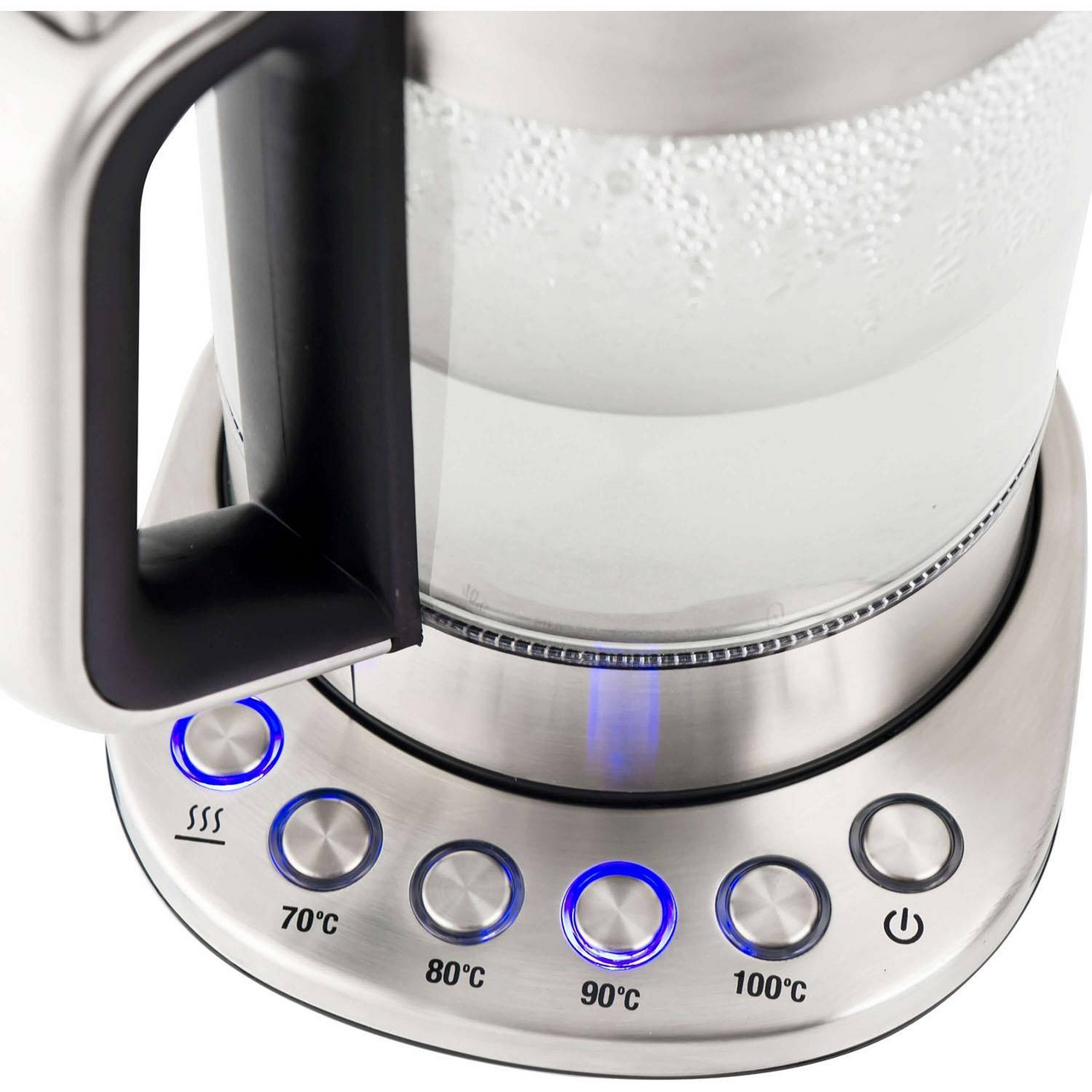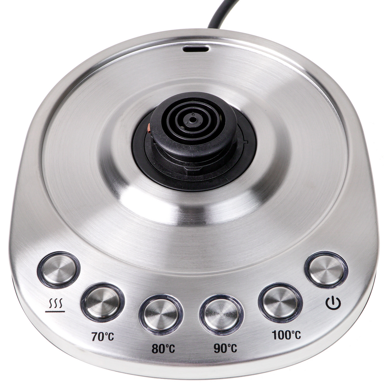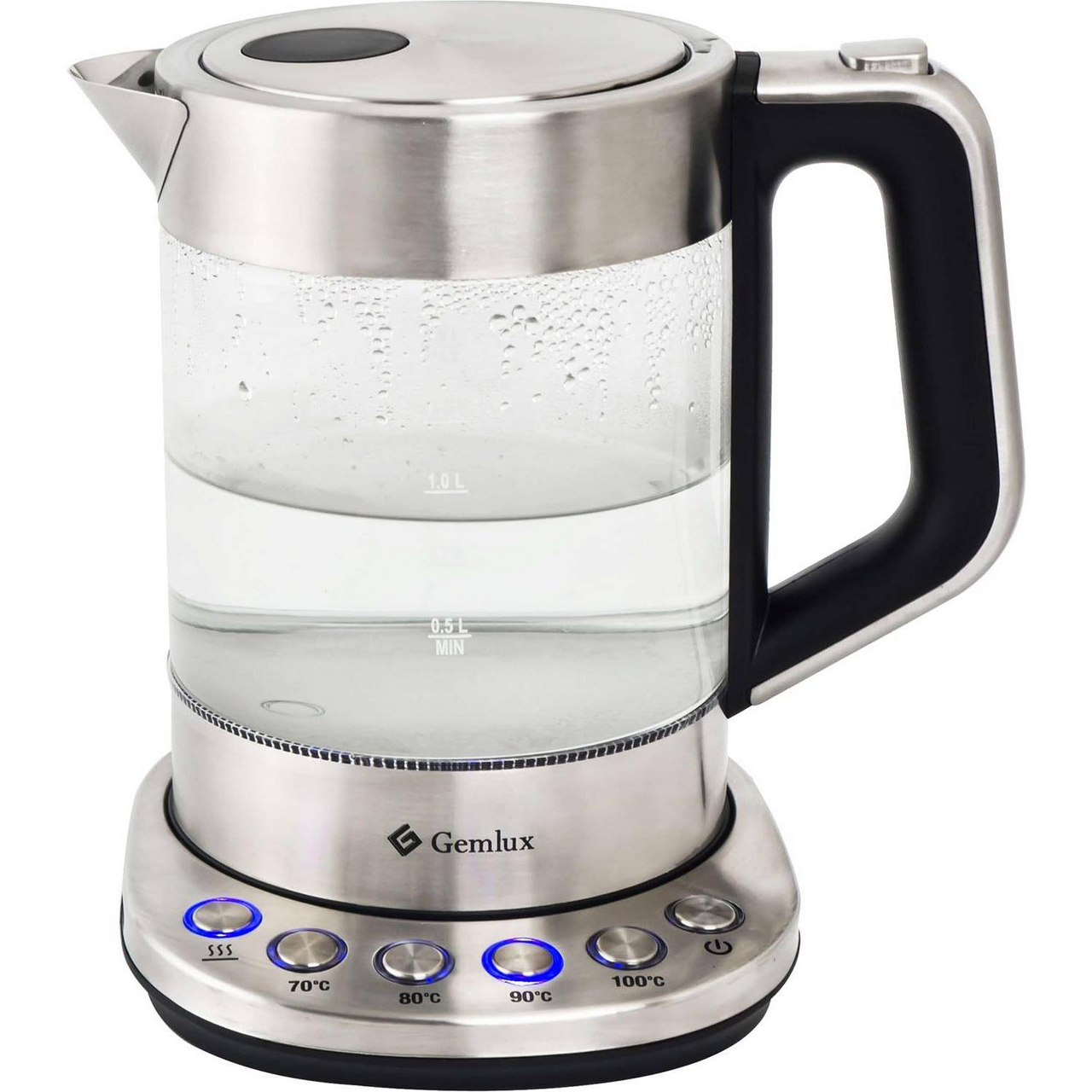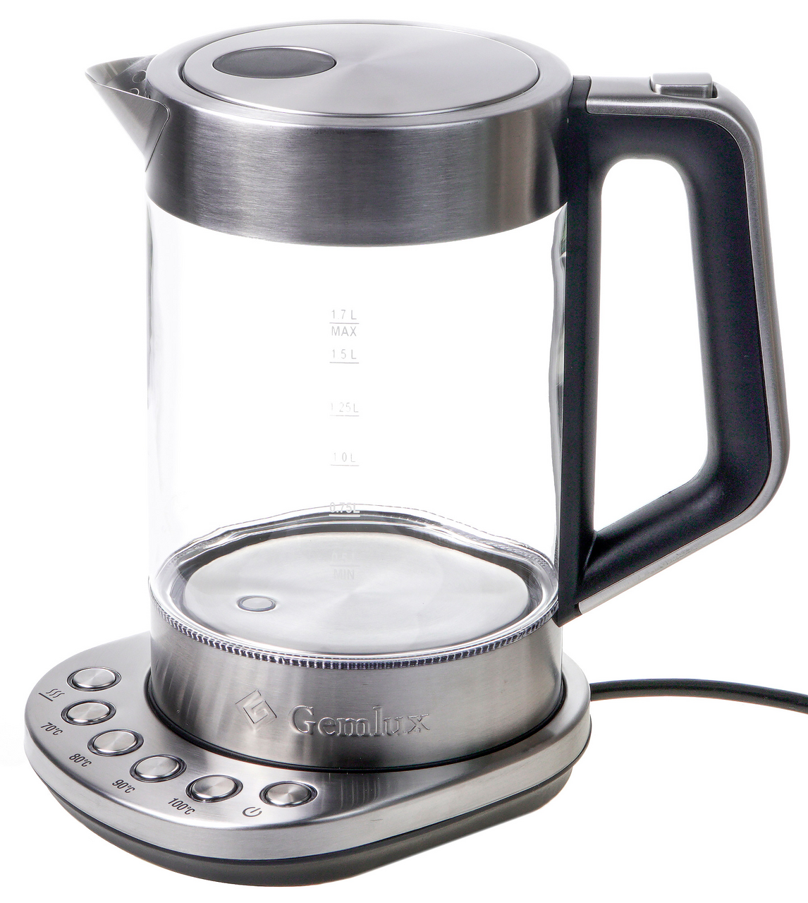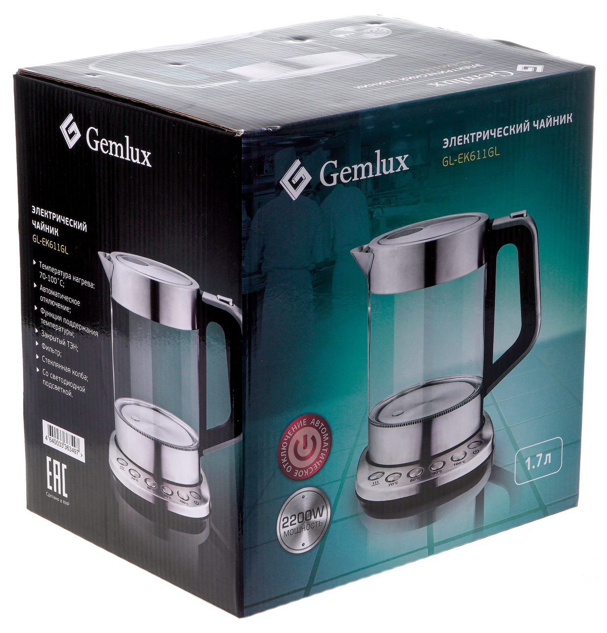 Чайник электрический Gemlux GL-EK611GL – отличное приобретение для дома и офиса. Стильный и лаконичный такой прибор будет уместно смотреться на любой кухне и украсит ее. Данная модель имеет интуитивно понятное электронное управление, расположенное на подставке, что убережет кнопки во время чистки резервуара. На ручке размещена лишь одна кнопка — автоматически открывающая крышку во время нажатия. В чайнике Gemlux GL-EK611GL есть несколько температурных режимов: во время первого запуска прибор будет доводить воду до стандартных 100C, но также есть возможность задать температуру: 70, 80 или 90C. Каждый интервал соответствует определенному виду чая: черному, зеленому, белому и др.