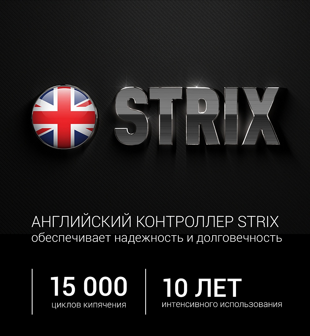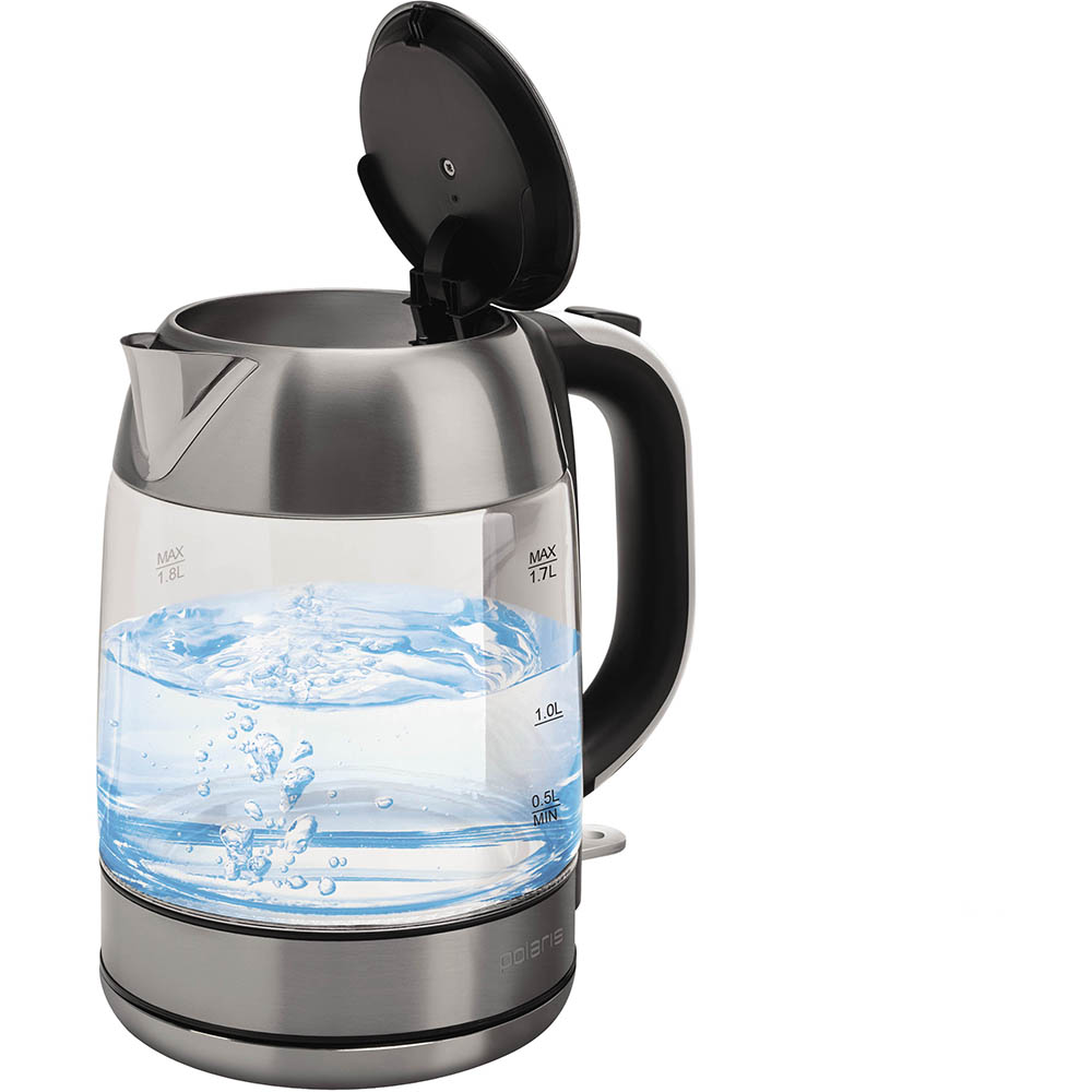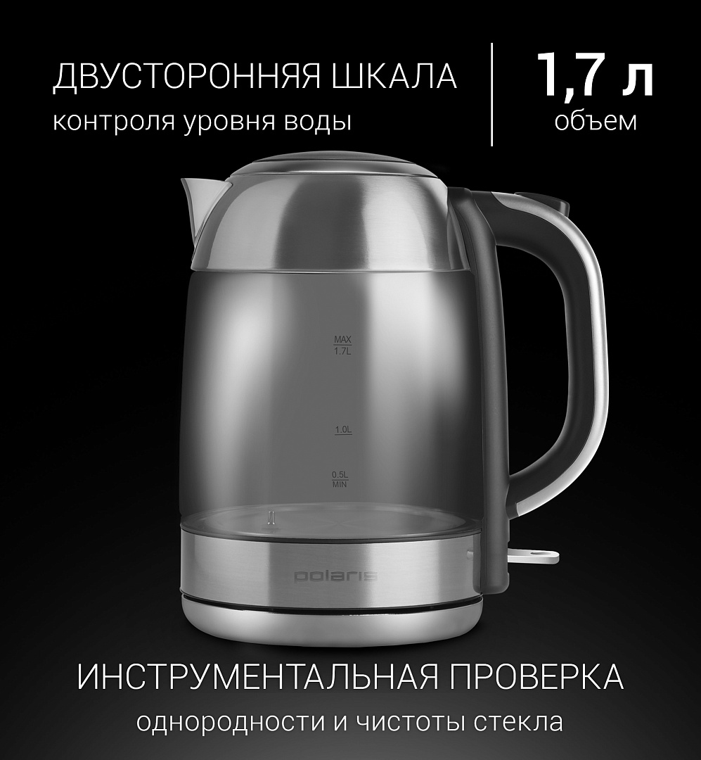 Чайник Polaris PWK 1791CGL сочетает элегантный стиль и удобство использования. Потребляемая мощность 2100 Вт позволяет эксплуатировать его в зданиях с устаревшей проводкой. Корпус модели выполнен из термоустойчивого экологичного стекла, которое не изменяет вкус и запах воды. Он красиво подсвечивается во время работы прибора и дополнен мерной шкалой для контроля объема жидкости. В колбу можно залить до 1,7 литров воды, подогреть или вскипятить которую позволит скрытый дисковый элемент. Он работает бесшумно и отличается экономным энергопотреблением. База, крышка и ручка устройства изготовлены из надежных пластиковых материалов. У основания носика находится съемный фильтр, который задерживает частички накипи и не дает им попасть в чашку. Периодически его следует снимать, промывать и устанавливать обратно. Контроллер Stix продлевает срок службы прибора, обеспечивая его автоматическое отключение при пустом резервуаре или после закипания жидкости. Крышка устройства открывается плавно, при нажатии кнопки у основания ручки. Широкое горлышко колбы позволяет очистить емкость во время ухода за изделием и долить нужное количество воды.