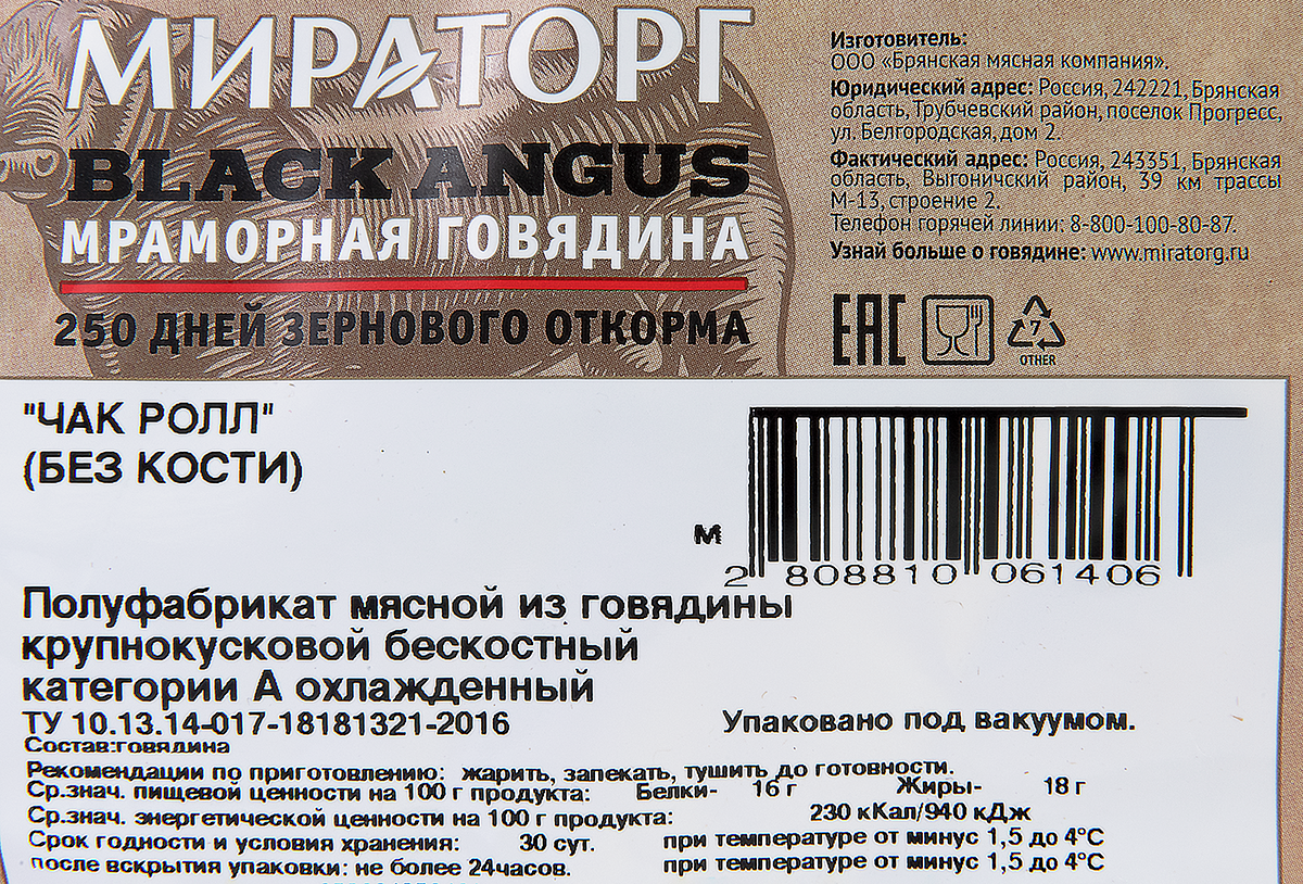 Говядина Мираторг Чак ролл