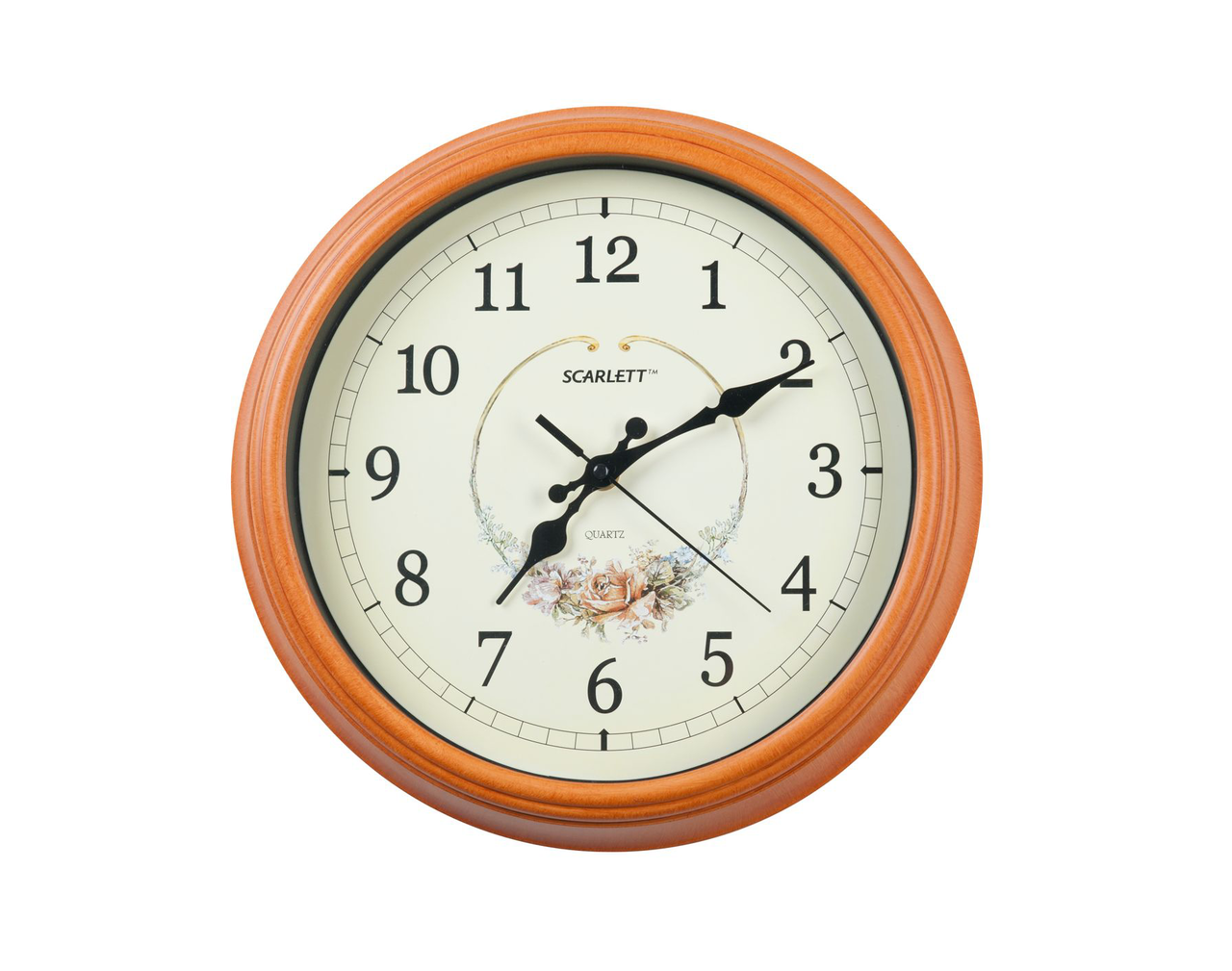 Часы насте��ные Scarlett SC-25Q. Элемент питания: батарейка АА 1,5 Вольт. Период работы от одного элемента: 12 месяцев. Плавный ход секундной стрелки. Размер: 30 x 30 x 5 см. Срок годности не ограничен.