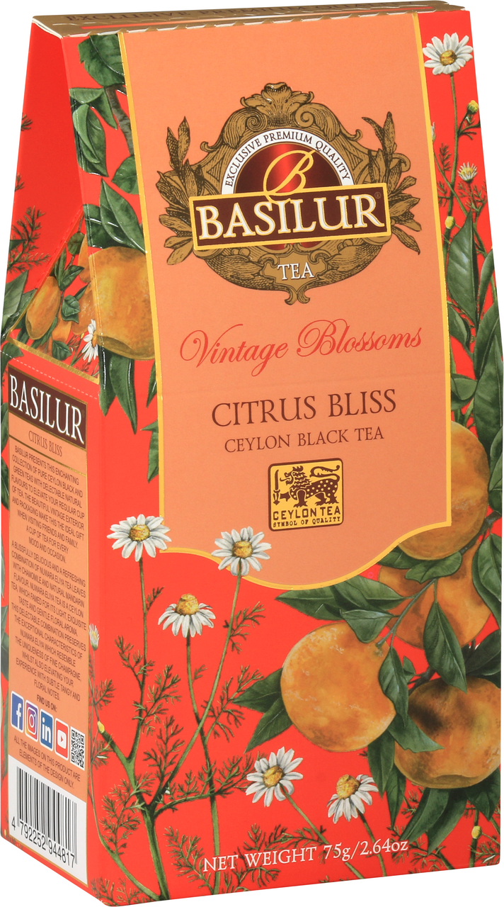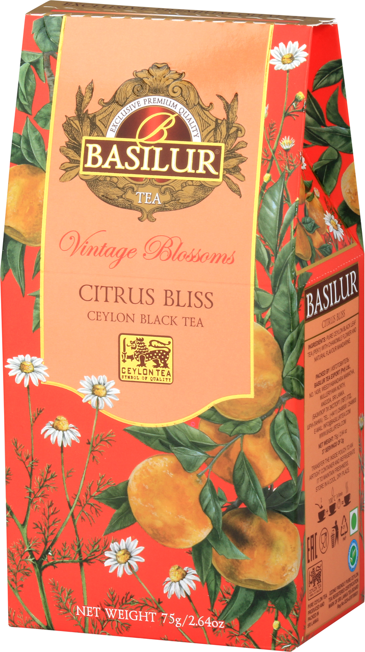 Изысканный цейлонский чай с нежным вкусом и ароматом мандарина и ромашки. Ромашка и мандарин содержат необходимые витамины и минералы для здоровья, что является исключительным сочетанием с антиоксидантными свойствами цейлонского чая. Идеален для здорового образа жизни. Сочетание черного цейлонского чая премиум качества с мандарином, дополненная лепестками ромашки позволит вам окунуться в атмосферу незабываемого вкуса. Оцените по достоинству невероятный аромат этого чудесного напитка. Basilur очень трепетно относится к созданию всех своих купажей, подбирая только самые лучшие чайные листочки, дополняя их натуральными ингредиентами, создавая настоящую гармонию вкуса. Идеальный подарок на любой праздник себе и близким.
