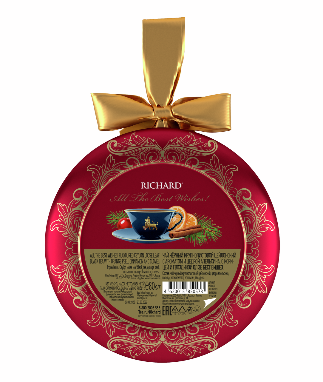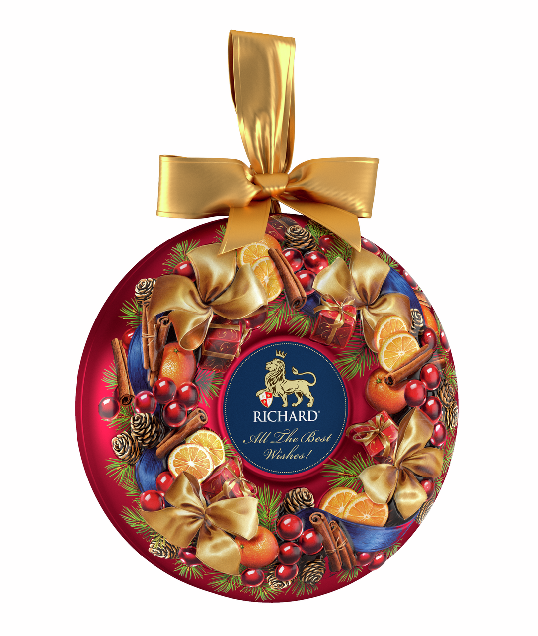 Это ароматный листовой чай с апельсином и пряными специями, который согревает и поднимает настроение. Яркая упаковка в виде классического рождественского венка с шелковым бантом делает коллекцию идеальным подарком в период зимних праздников.