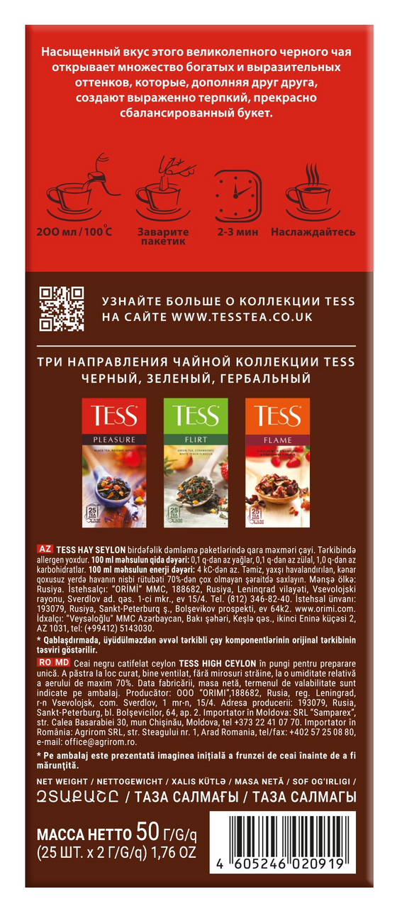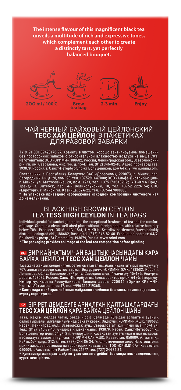 Чай черный Tess High Ceylon (2г x 25шт), 50г